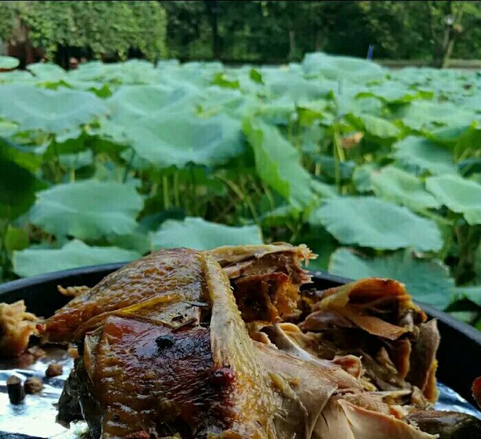 其实有点像城市农家乐的感觉,可以在这里呆一天,有荷花池,有树荫,可以打麻将喝茶,再吃吃招牌菜很赞的 环境,这个要给5分,因为有一个很大的荷花池,然后荷花池的中间有一个廊道,坐在廊道里面吃饭,吹着风儿,然后荷叶飘香,感觉非常好,每次来都要坐在廊道的位置。很赞。 菜品,因为两个人吃,所以只点了两个菜,一个叫花鸡,168元,一个棒子骨萝卜汤,46元,人均就要100,我觉得价格还是有点偏高,当然,分量也确实很足,不过棒子骨汤也只有一坨肉,其他都是大萝卜,46元的价格确实偏贵了。鸡肉这次吃的比上次吃的偏干一些其他都还可以。 服务,服务员都很热情,坐下来就会很热情的询问要喝苦荞还是菊花,这种喊你点茶的就不用理哈,因为是要单独收钱的,他们也有免费的茶水的。