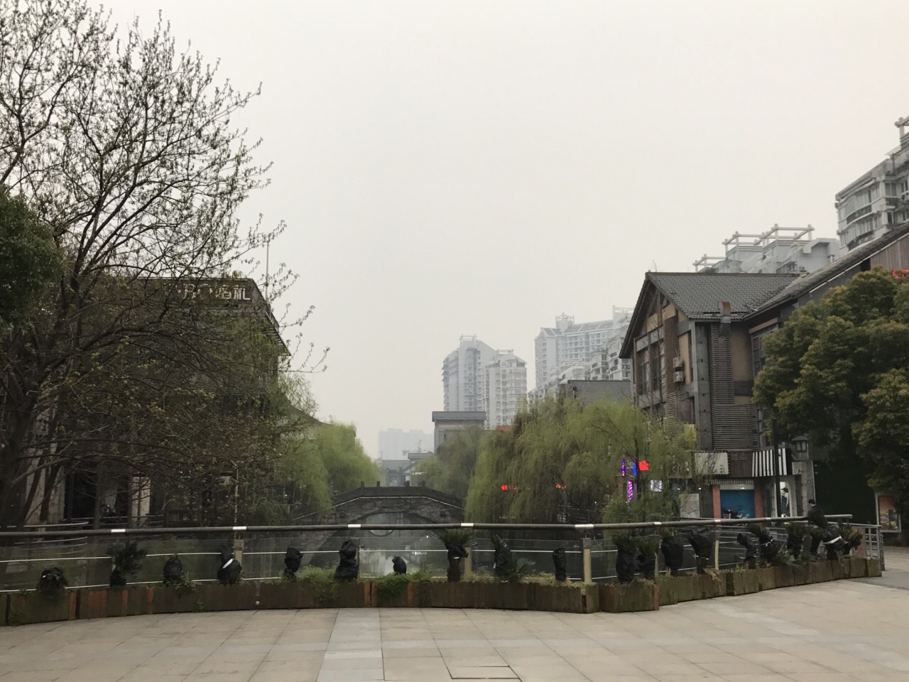 信义坊步行街沿余杭塘河两岸而建,全长500米,借鉴古代江南沿河街市的模式