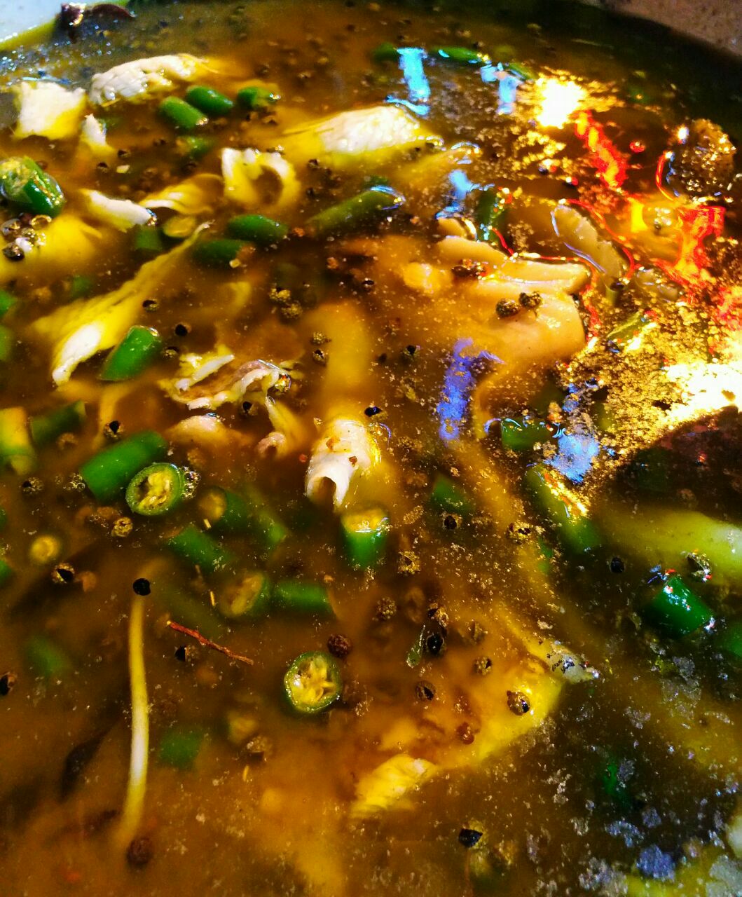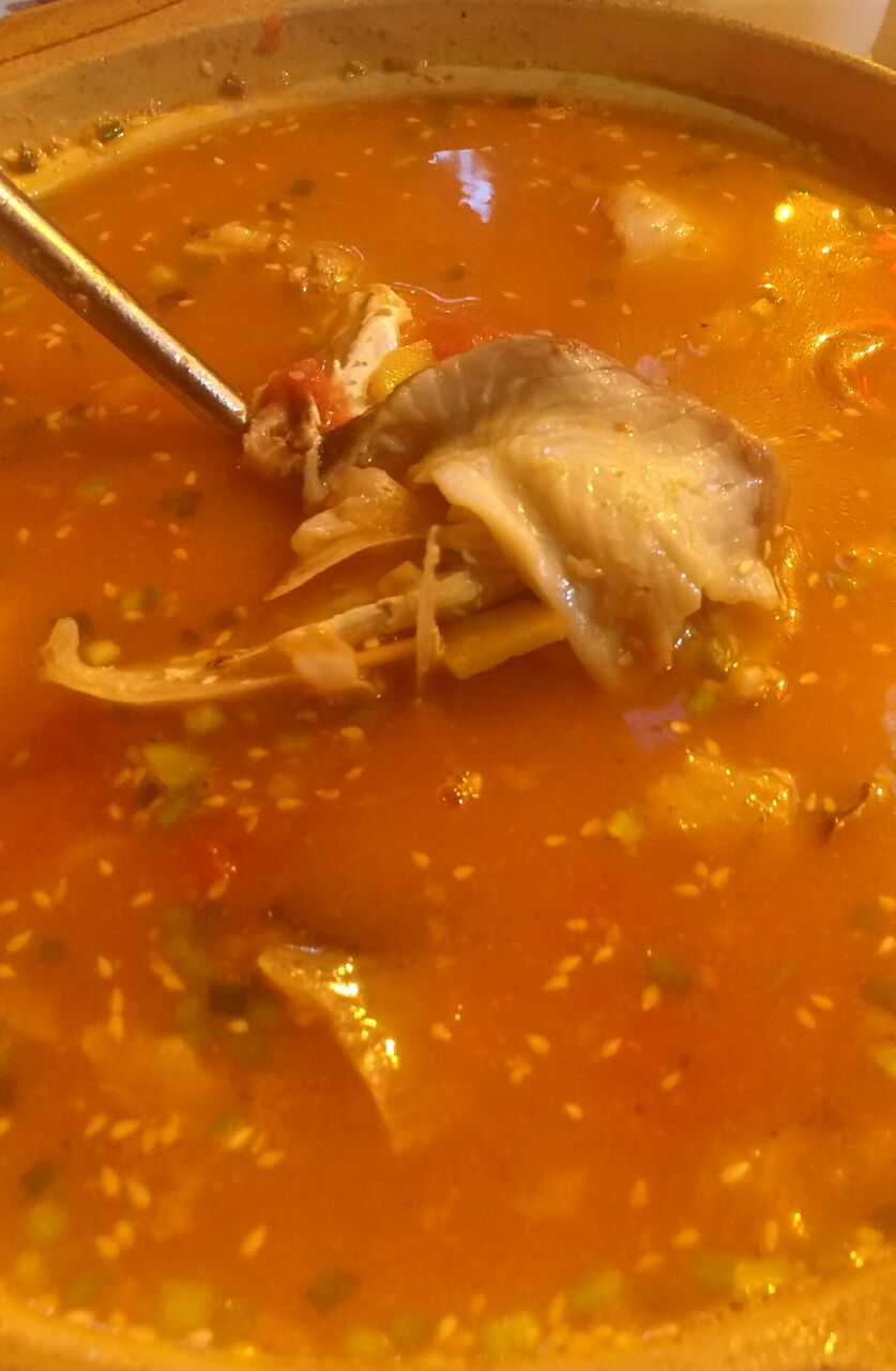 特色花椒鱼口味很劲爆,又辣又麻又烫,鱼片特别嫩,但刺多。蕃茄鱼熬制的时间比较长,鱼汤鲜美鱼肉爽滑,口味清淡。红糖糍粑呈条状,器皿里呈上一把剪刀,正惊讶之时,带我来的土著资深吃货朋友一手夹糍粑,一手捏剪刀,哦,这里的糍粑剪着吃,用剪刀剪成小块,沾上黄豆粉,再裹上红糖汁,外香酥内软糥,爽口!卤菜拼盘可以任意拼,配上干油碟,卤菜也可以吃出串串香的风味。砂锅时蔬是三四种青菜混合煲制,色泽嫩绿,口感咸鲜。店面适中,生意火爆。到店须先去厨房点杀活鱼。服务热情,就餐高峰时间高朋满座,需等候餐位,催促上菜。结账方式多样,方便快捷。