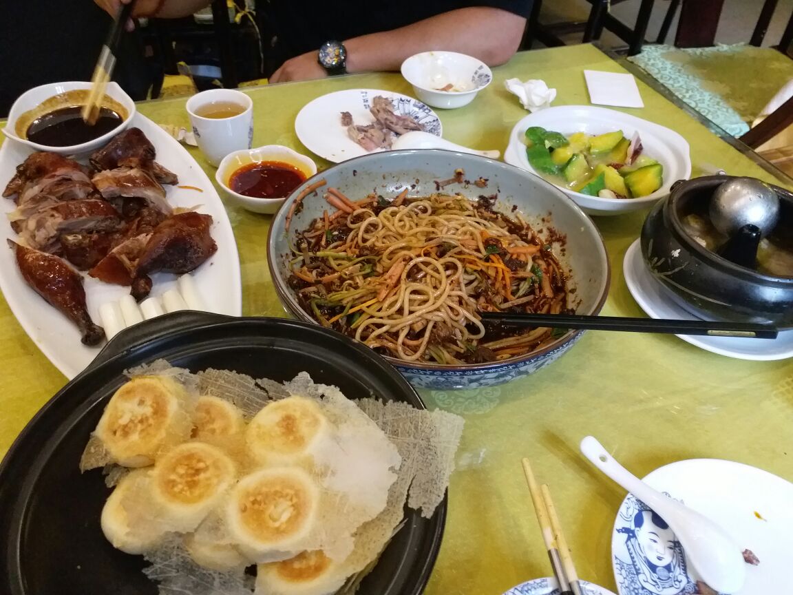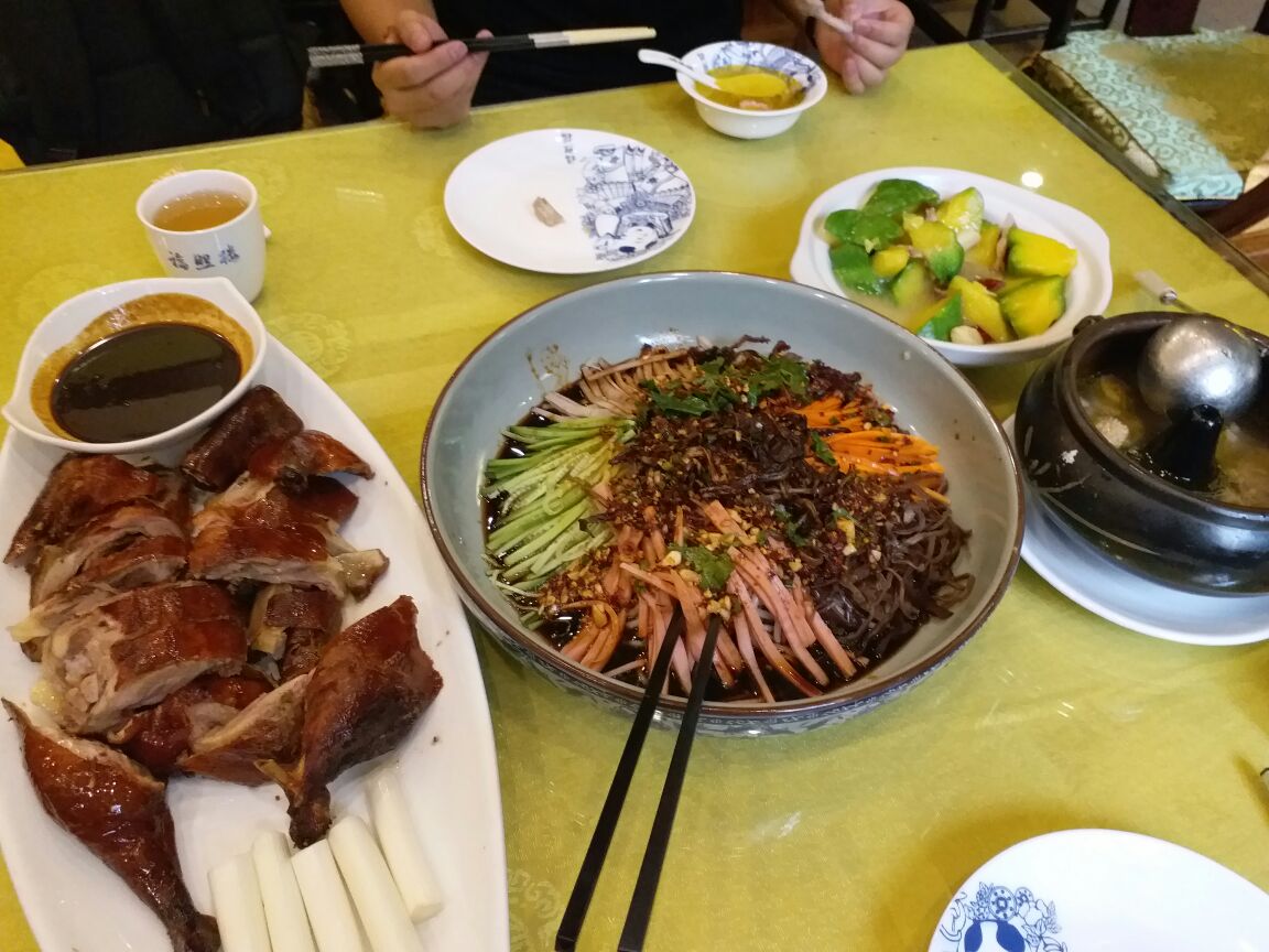 ...凉米线有点咸,松毛烤鸭皮脆肉嫩,火腿焖小瓜不错,是老火腿,有画龙点睛之妙,生煎包是速冻的,差评传统滇菜。两人,点了汽锅鸡,凉米线、松毛烤鸭、火腿焖小瓜,生煎包。汽锅鸡超好,凉米线有点咸,松毛烤鸭皮脆肉嫩,火腿焖小瓜不错,是老火腿,有画龙点睛之妙,生煎包是速冻的,差评。