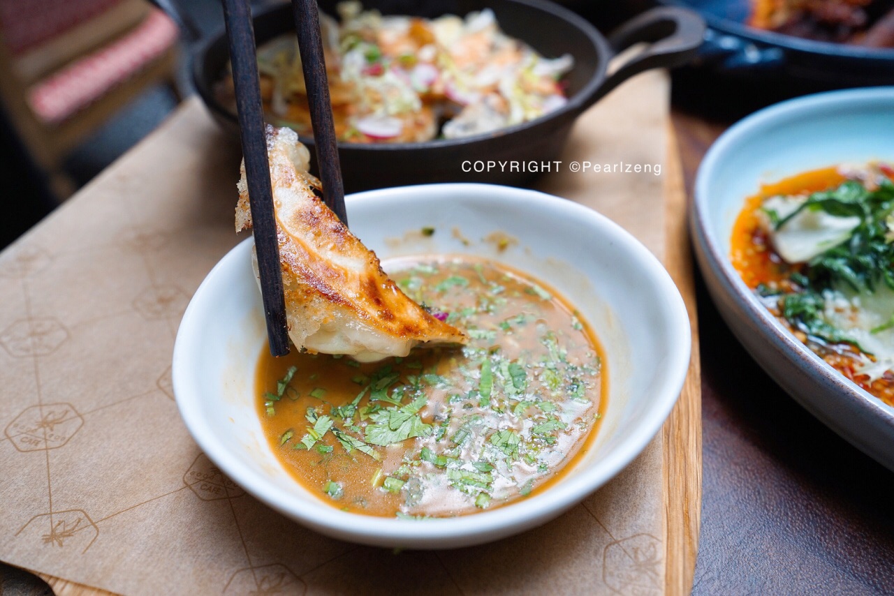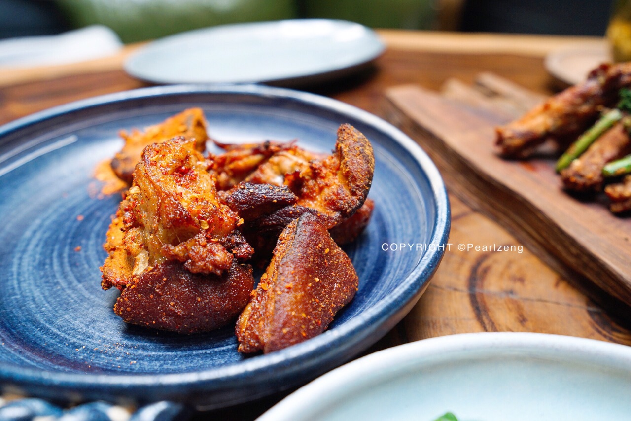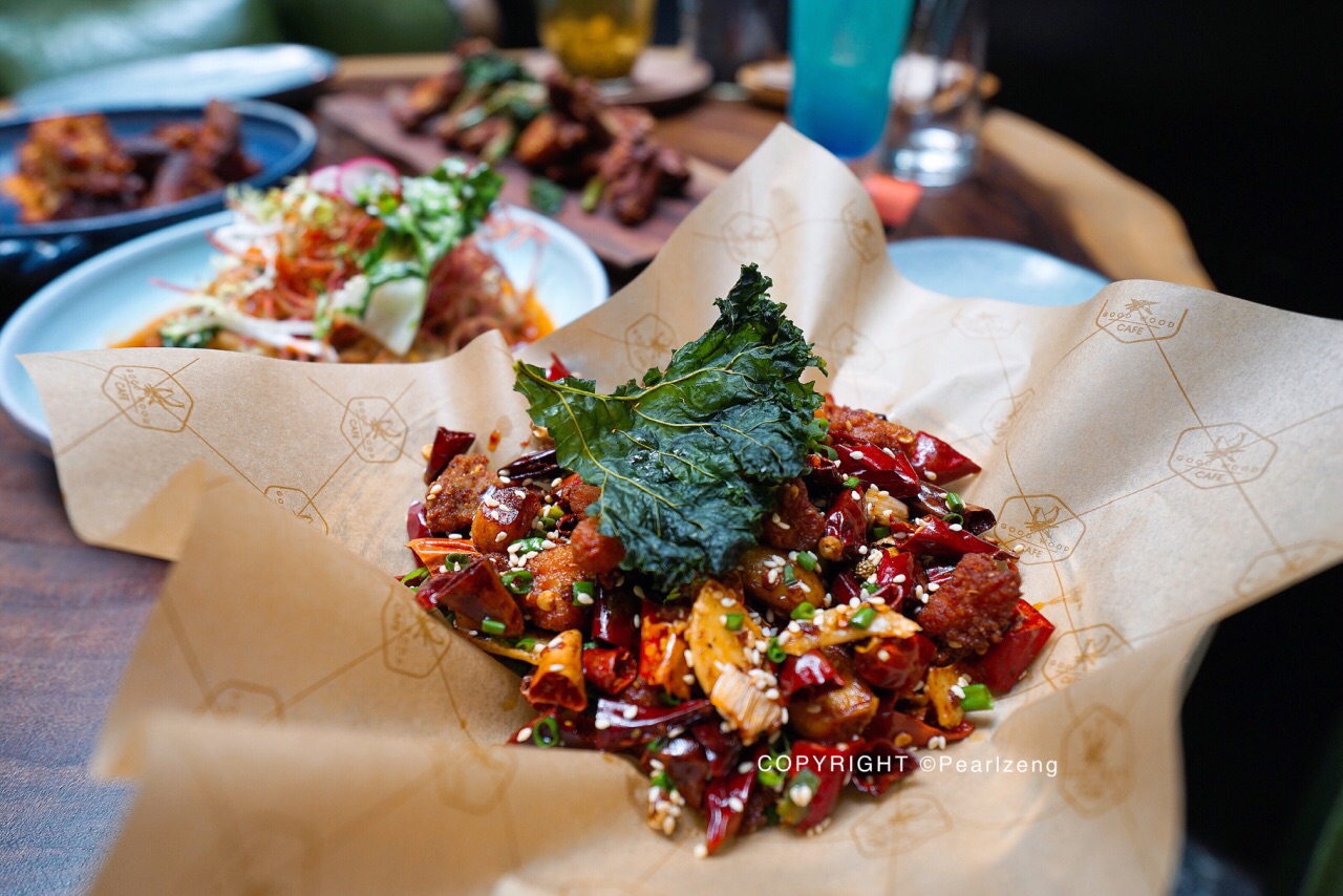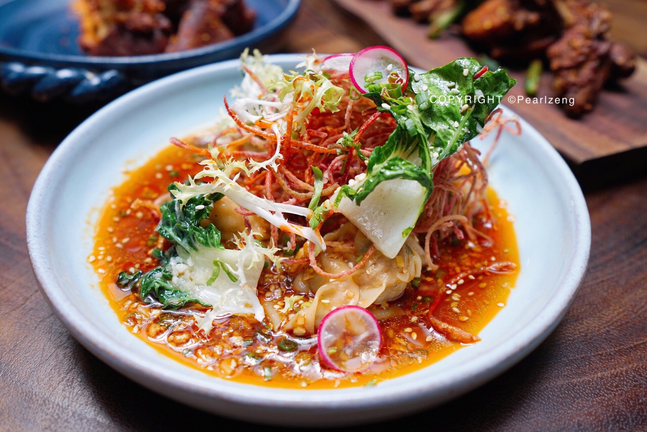 新加坡Birds of a Feather 开业不到十天就上了新加坡米其林推荐餐厅,这家跟纽约唯一的米其林一星中餐一个名字,但是并不是同一家。 主打精品创意川菜+酒吧,中西融合的非常好,每一个区域都有不一样的感觉。 ⚪️Sichuan Red oil Dumpling 四川红油抄手 $15 完全猜不出来是红油抄手,没有传统的红油抄手那么麻,但是特调的汤汁有种微妙感很容易上瘾。 这些菜单写是小吃,但是看到图片你们懂得,都是很大一份,价格在十几块新币左右,约上朋友聊聊天吃吃小吃,点些特调鸡尾酒,浪一整个下午是没有问题的