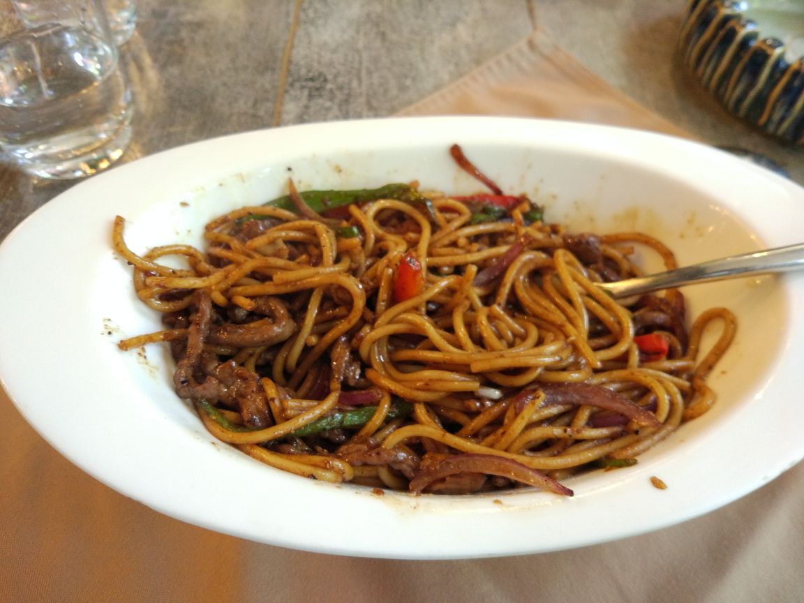 这家位置就在7-11对面,比较好找,装修还不错,就是靠窗沙发椅子做下去太矮了。服务还可以。 黑椒牛肉意大利面:味道还不错,就是太油了,口味和健康平衡下更好。 盐煎肉套餐: 凑合,但是如果多一点绿叶菜会更好,绿豆汤不错,不冰,也不热,很好。 打包了个拿铁咖啡,比较一般,太淡了。 整体还行,不会特意去,路过可以吃。