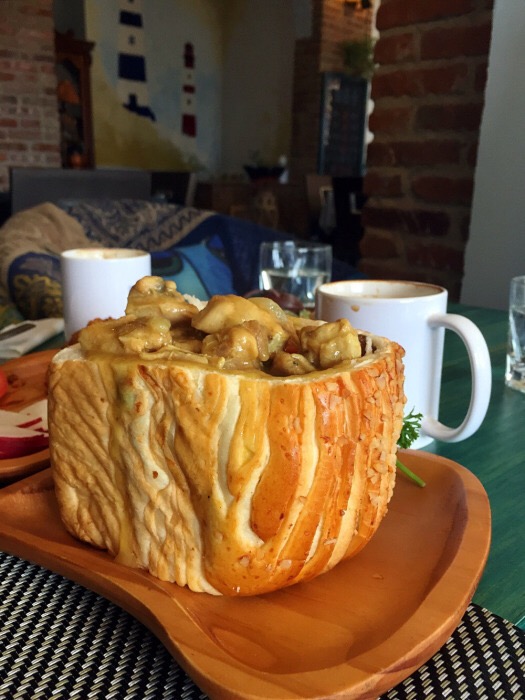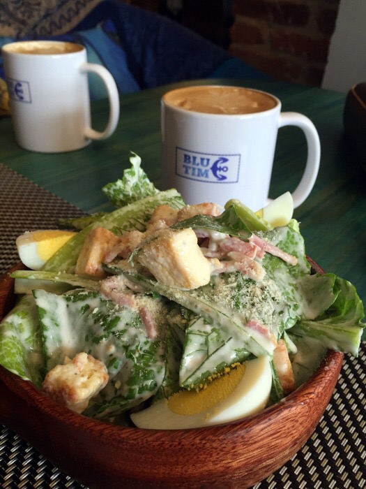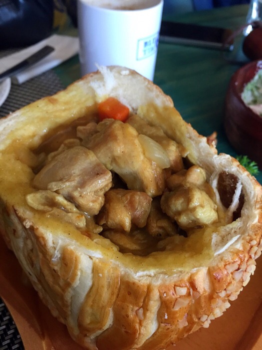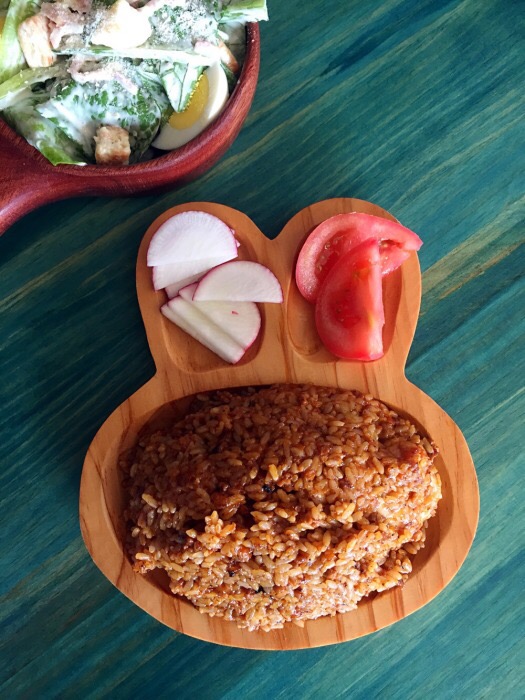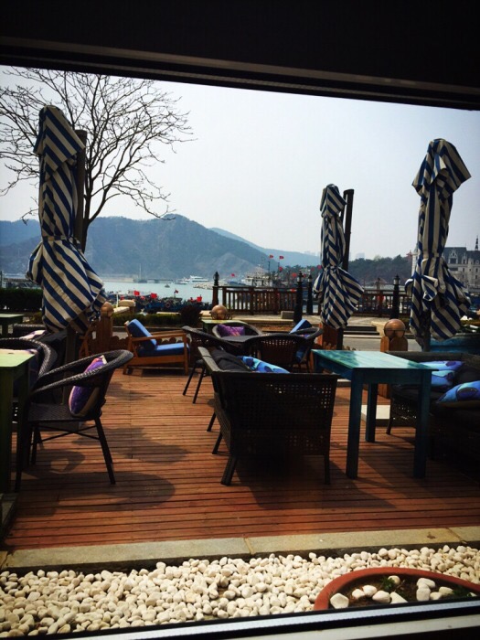 老虎滩渔人码头里面的漂亮的餐厅,在猫空旁边,有自己室外的庭院,天气适宜的时候,在这里就餐真真是面朝大海,春暖花开~ 餐厅室内的感觉有点地中海风格吧,随性自然;中奖的套餐里面是2杯咖啡,一份芝士肉酱炒饭,一份凯撒沙拉,一份咖喱面包鸡~ 特别喜欢芝士肉酱炒饭,相对于炬饭这样的炒饭每一口都可以吃到翻炒均匀的芝士感觉更好呢,而且炒饭的味道正合我口味好棒!盛炒饭的兔子木盘也萌萌嗒^_^,沙拉和咖啡也不错,只是咖喱面包鸡不是我的菜,过于清淡了我太重口味,喜欢清淡口味的小伙伴应该会喜欢~ 服务很赞的!背景音乐也好听!感觉特别舒服的一餐^_^