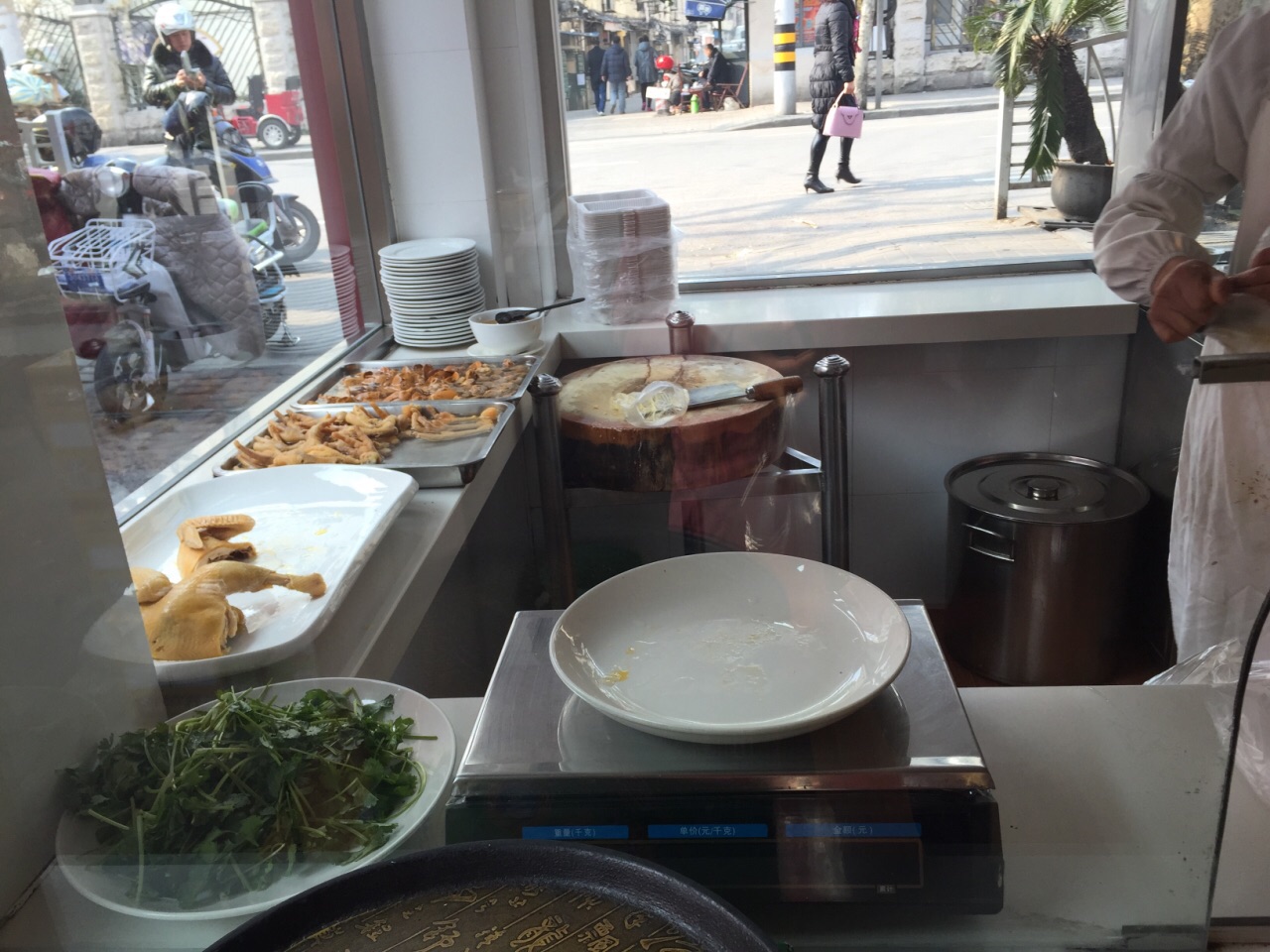 这家店一直外带的 从来没有堂吃过 每月去看外婆 总会带上他们家的三黄鸡 因为外婆喜欢吃鸡 徘徊于振鼎鸡&三黄鸡 渐渐地发现 三黄鸡的价格实惠 品质也好 所以大部分情况是买他们家的 一斤的话 外卖28.8 堂吃30.8 我每次都是四分之一鸡翅部分带走 外婆一个人一顿足矣了 价格基本控制在15-20元之间 挺好的呢 有酱油 姜提供 中午堂吃的客人也蛮多的 本帮为主的小吃店