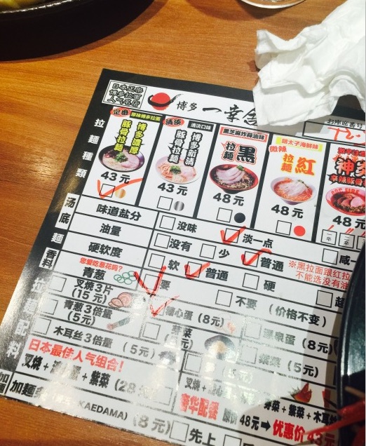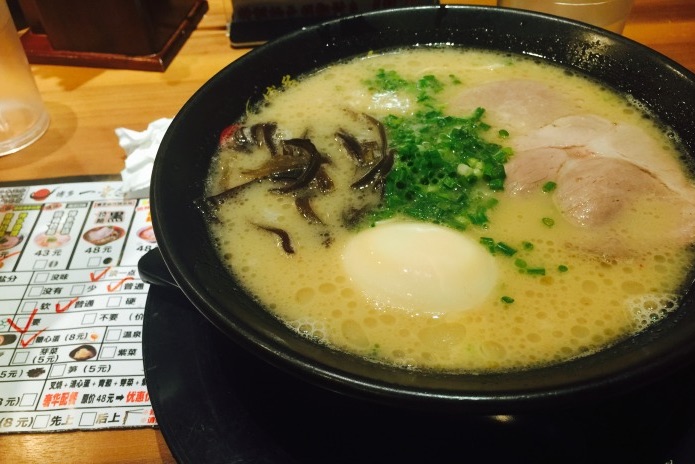冬天来碗热气腾腾的拉面是再好不过的了~每次路过这家都在排队,这次赶了个早去~ 拉面还是最爱原味的,选了浓厚豚骨拉面,口味选了淡一点,但是也太淡了,不过桌上有调味酱,加了就变好次了~ 汤头看上去特别浓厚,特别喜欢里面的糖心蛋啊,软噗噗哒口感。 小食选了饺子,这个稍微逊色点,口味还行~ 人均的话6,70左右,心情好的话会再来吃~
