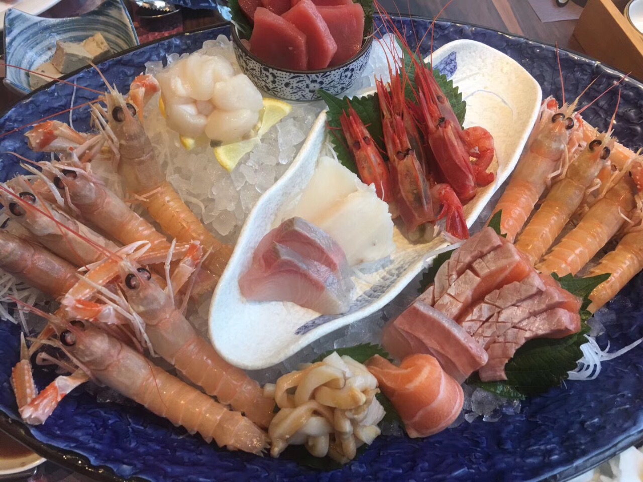 大爱这里的海鲜大餐,刺身很新鲜,可惜龙虾刺身和哈根达斯燕窝雪糕每人限点一份周六同事生日,大家相约去鱼鲜生去吃海鲜自助餐。中午到店,人比较多,还好提前预定了位置。大爱这里的海鲜大餐,刺身很新鲜,可惜龙虾刺身和哈根达斯燕窝雪糕每人限点一份。