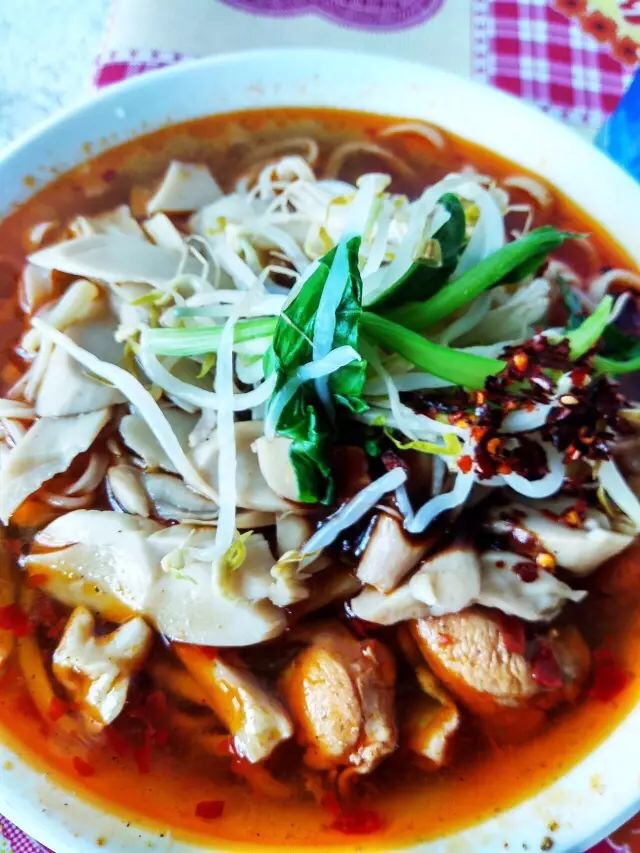 拉面还是挺好吃的,面是现抻的,筋道有力,鸡肉蘑菇卤各自分开,味道互相不影响每天上午十一点开卖,一点半就卖完收工。拉面还是挺好吃的,面是现抻的,筋道有力,鸡肉蘑菇卤各自分开,味道互相不影响。等到天冷了再去试试它家只有冬天做的麻辣牛肉面