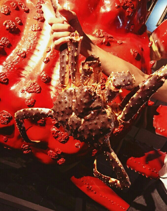 来到海洋世界旁边的蟹之国吃晚餐。店挺有意思的,规定平均每个人要点一斤的蟹,但是其他的配菜可以任点的来到海洋世界旁边的蟹之国吃晚餐。店挺有意思的,规定平均每个人要点一斤的蟹,但是其他的配菜可以任点的。于是我们点了三只蟹,还有挺多的各式燒烤配菜,吃到最后真的是撑到了。