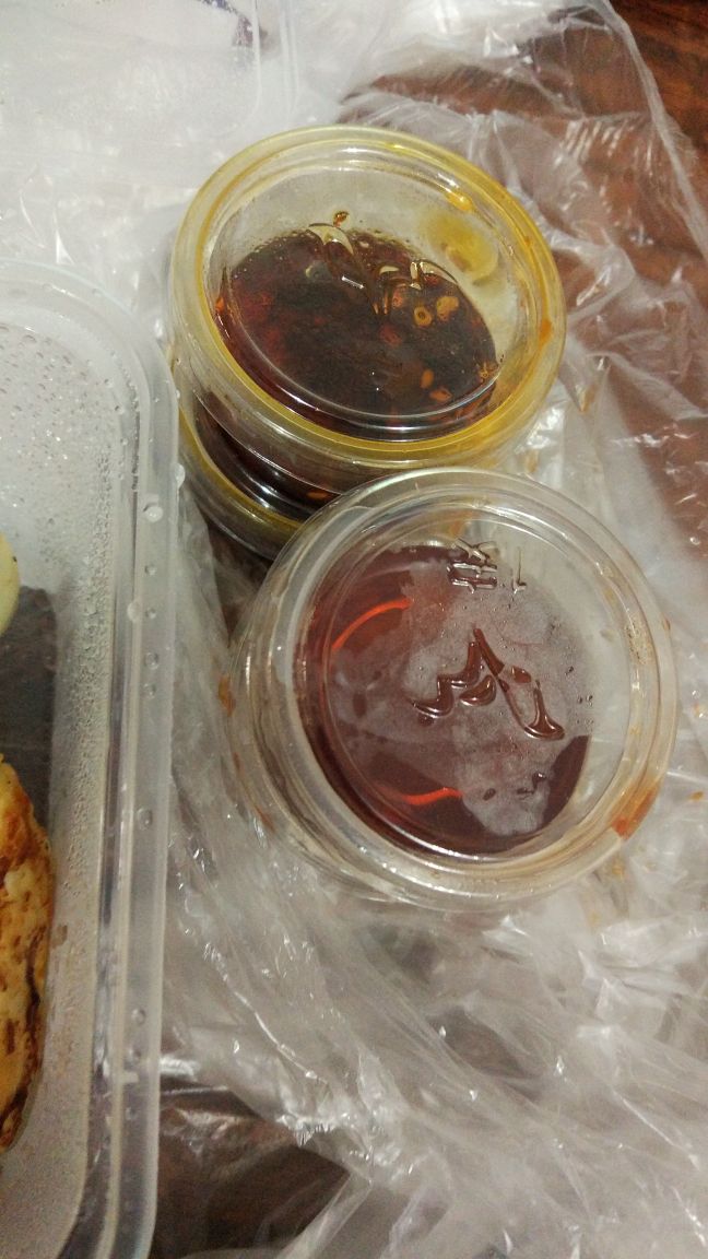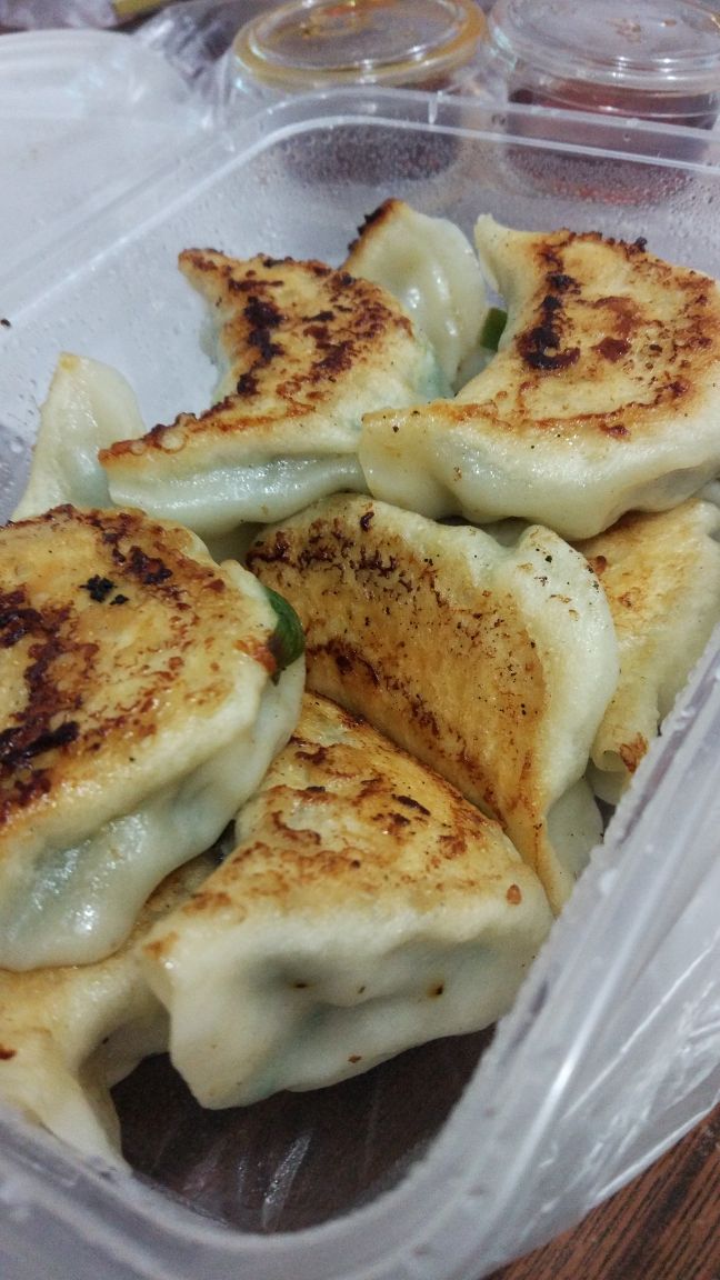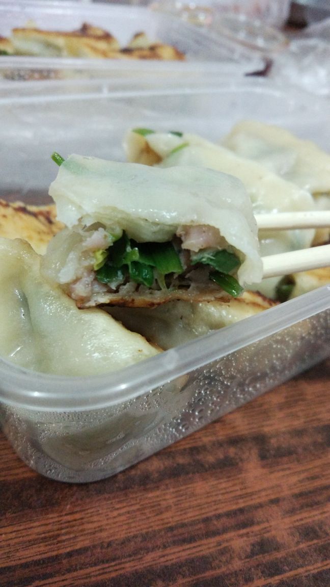 绝对是老广的煎饺味道。店铺比较细,所以打包回家吃。皮比较薄,而且肉馅适中,调味有些咸,但搭配到老火粥就刚好,因为感觉老火粥没有什么味道。13元10只,其实都几抵食的,买了两份,再加一个老火粥,足以满足早午餐了。而且外卖盒子的盖,还特意整两个大隆隆散热,不会让煎饺因倒汗水关系而林身了。很贴心的店家。唯一不足,个人觉得蒜蓉辣椒酱比老干妈更配煎饺。