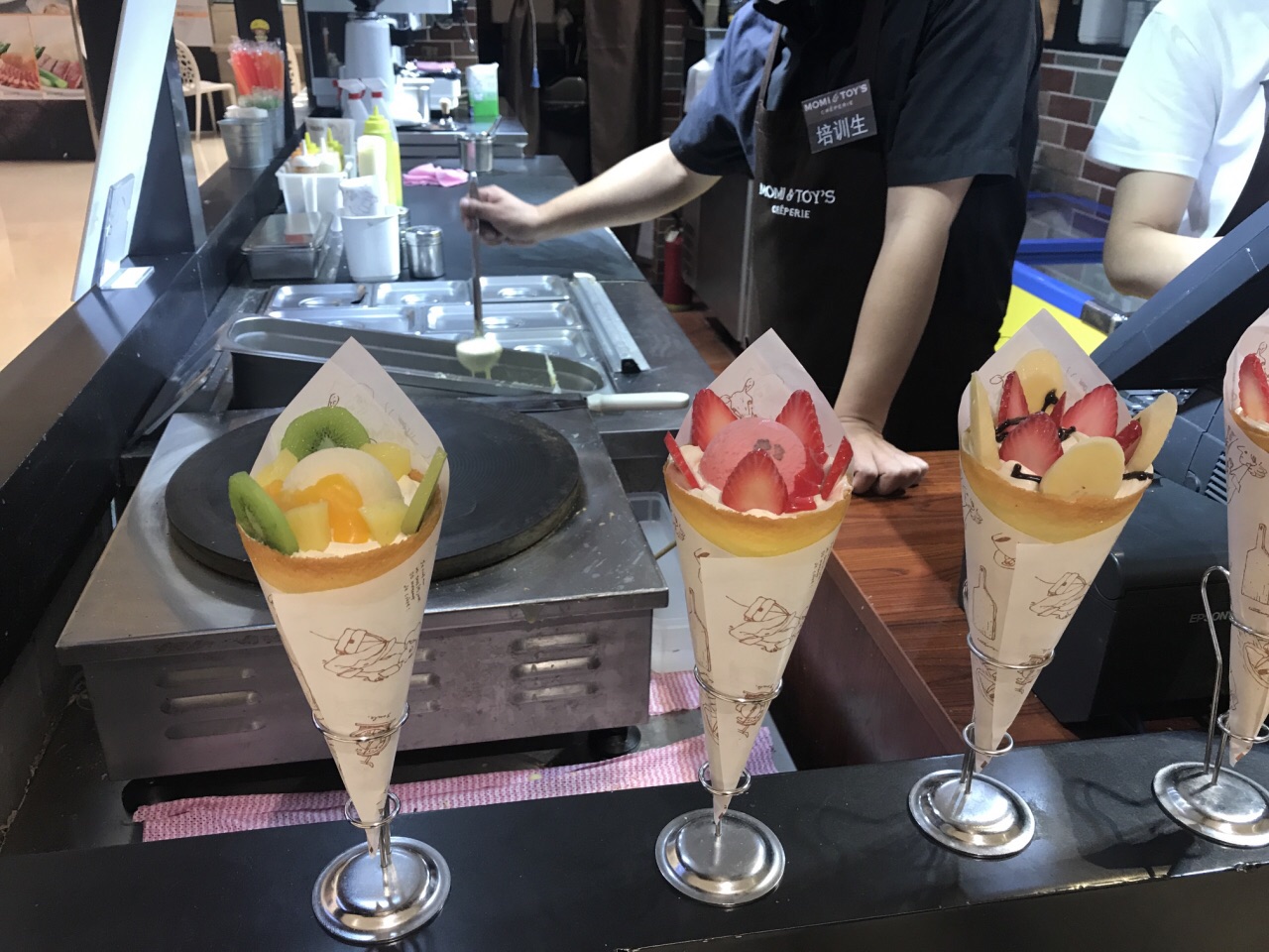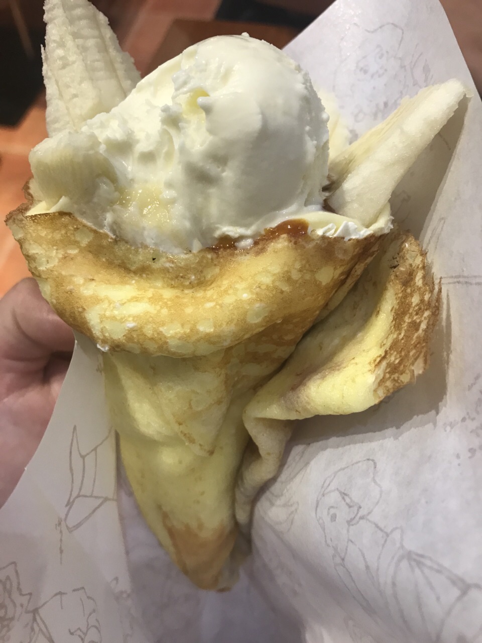 逛高岛屋的时候就有种在霓虹的感觉,东西都蛮精致的,下午茶时间有点饿了,b1好多好吃的,突然想吃可丽饼,点了一个香蕉焦糖口味的,加了一个香草冰激凌,还蛮好吃的,吃得出原材料很好,就是不怎么好拿,吃的手上粘糊糊的,而且性价比蛮高的。