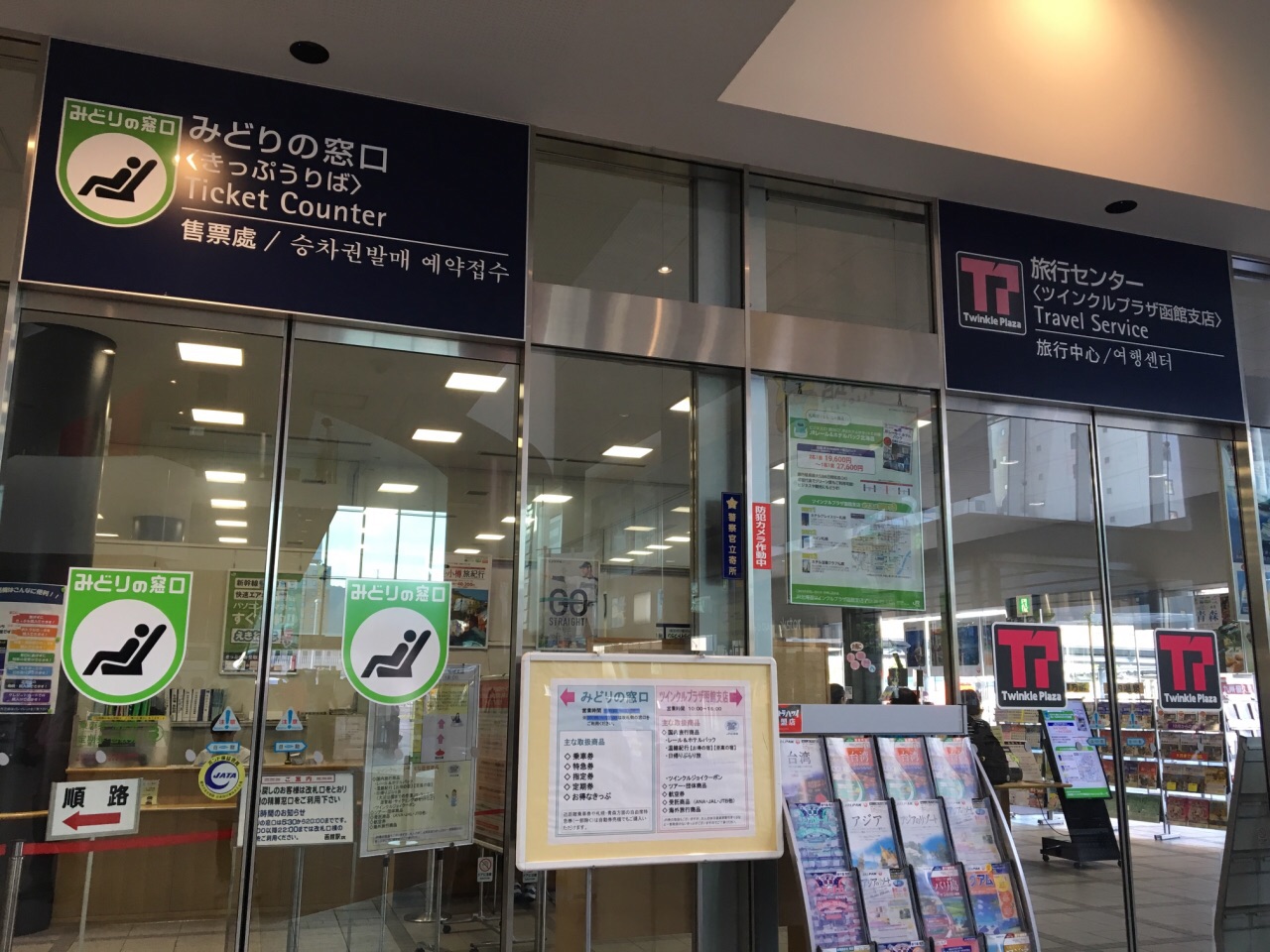 在这里可以买到函馆的巴士日票,也有很多函馆景点的相关资料可以随意拿取函馆观光案内所就在检票口的旁边,出口处的左手边。在这里可以买到函馆的巴士日票,也有很多函馆景点的相关资料可以随意拿取。在这里并没有看见会中文的工作人员,但是在外面的巴士站里面,有会讲中文的工作人员。