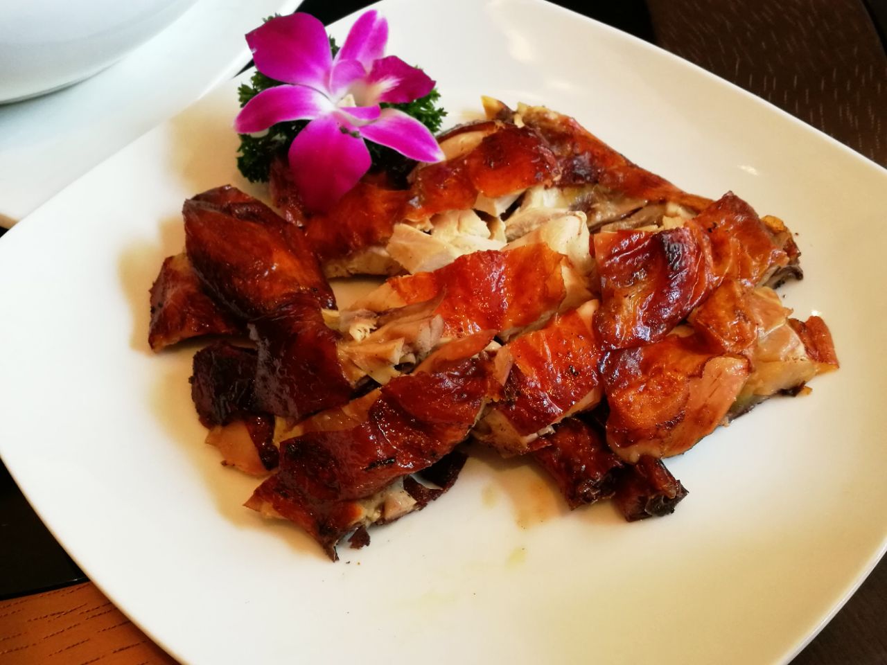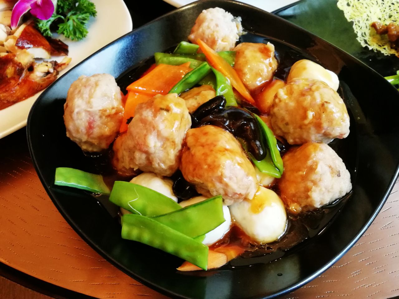 光明万丽酒店是武昌老字号酒店了,适合各种宴请、商务活动。这回有朋友在此设宴,万丽酒店的中餐厅,在二楼,有堂食,也有月湖、东湖小包房。菜品尚可,并没有深刻印象。小菜是泡藕带、芸豆、腰果等。烤鸭还比较香,卤鸡有些柴,口感很一般。炒菜平平。印象最深刻的居然是蛋炒饭,毕竟用的米不错,格外的香,我居然连吃了两小碗。至于长城干红,马马虎虎吧!一楼的向日葵格外的打眼鲜亮哈!