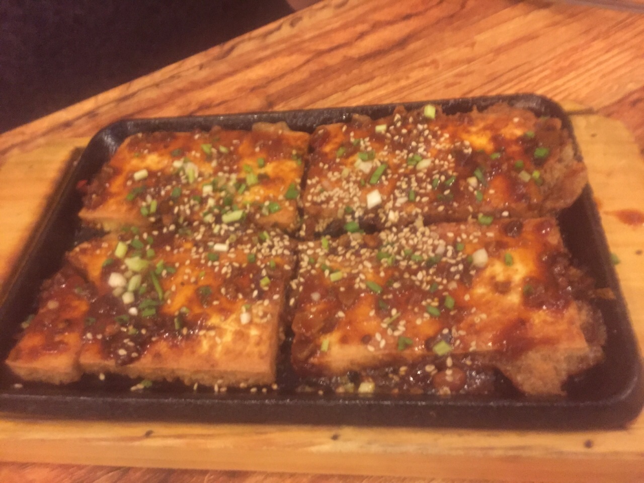 这家店我应该已经不止一次点评过了,每次去吃都能点出新的好吃的菜品。可能马上要搬家了,我最近又把这附近好吃的店都撸了一把。这次我点了铁板豆腐,非常好吃,韩式酱撒在卤水豆腐上,铁板看出来味道不是一般的好。另外推荐鱿鱼蛋包饭,颜值不错,鱿鱼也很入味。有机会还是要再来吃。