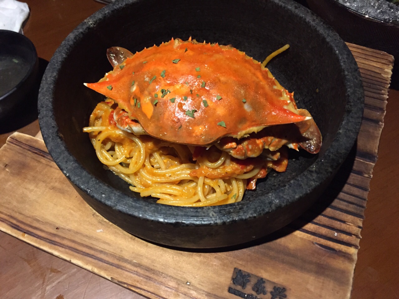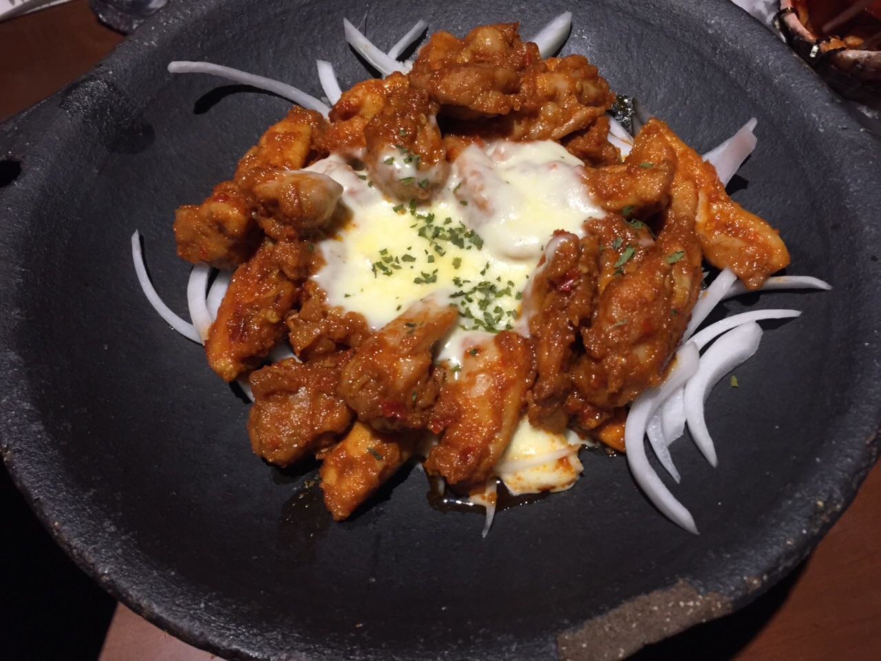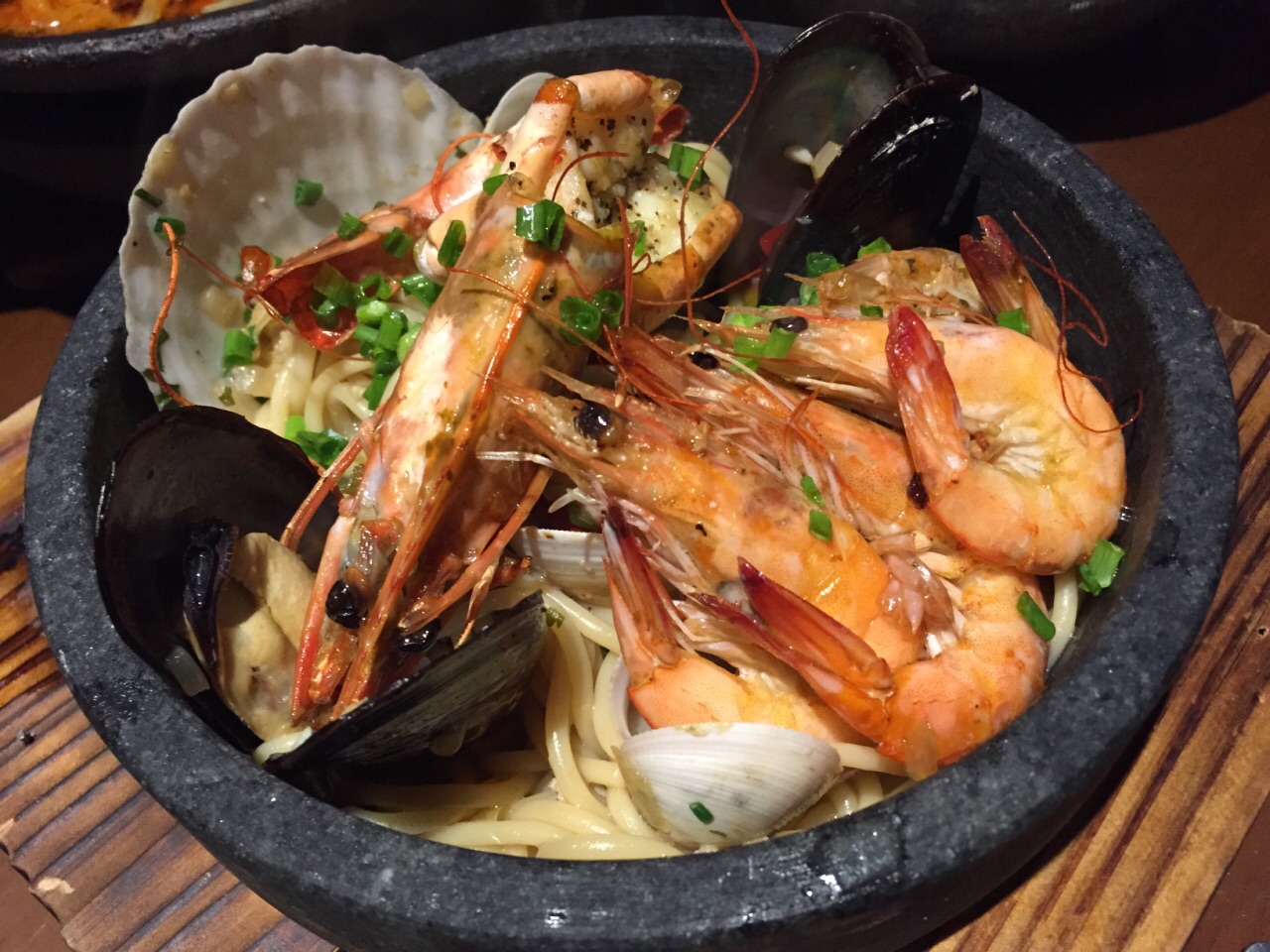 倍乐创意韩国料理 在魔都开了好几年了 记得早前的团购就深受好评 位置在新闸路近石门二路 地铁盲区 最近的是一号线汉中路站 我是从南京西路走去的 差不多要20分钟 别看是家创意韩料 一到晚上可是要变身动感酒吧的 装潢比较硬 打开门就是个吧台 座位类似高脚蹬 有两层楼 矿泉水是瓶装农心牌 湿纸巾是用调酒杯装的 逼格略高 别家没有 店里的噱头有三儿 其一:别家看不到的烧酒 其二:活章鱼(创意料理)其三:最最关键的 老板帅 伙计帅 帅出新天地 『菠萝烧酒&柚子烧酒』¥88 两款可爱的烧酒 浓度低 用水果(玻璃&柚子)做成器皿 菠萝味酸甜 柚子味微苦 『豆腐色拉』¥38 嫩豆腐外圈包着酥皮 浇了麻酱芝麻 口感清新 超赞 『芥末活章鱼』¥48 活的章鱼 待拍完小视频准备入口发现章鱼醉了 不动了 所以吃的时候不必担忧 『韩式辣酱拌海螺』¥68 盐巴上放着两颗海螺 紫菜点缀着 海螺里有酱拌的海螺片 入味又美观 『铁锅碳烤黑猪肉』¥68 送的生菜是用不锈钢漏斗装的(就是用来炸薯条的小版)黑猪肉、泡菜、菠菜 有蒜头点缀 汁水四溢的肉 入味的泡菜 碧绿的嫩菠菜 单吃、包菜都好 『铁锅红酒黑牛肉』¥188 一上桌那“滋滋作响”的声音让人垂涎欲滴 牛肉品质不错 可以从3分熟吃到七分熟 『芝士火辣鸡』¥68 说是店里最辣的一款餐食 对于爱吃辣的朋友来说 绝对是微辣 甜辣的鸡肉包着芝士一起 堪称完美 『蟹味辣酱意面』¥68 整只蟹 配上浓稠的意面 有加了番茄调味 虽说蟹膏不饱满 可光吃面条就很幸福 『墨汁参鸡汤』¥108 单份的参鸡汤88元 墨汁是加了整只活章鱼 有服务员现场解剖 墨汁四溢 整鸡包裹着糯米红枣 大补的一款汤品 『牛奶雪花冰』¥18 一小份 底部是牛奶 加了绵绵冰及酥软的红豆 撒了脆口的杏仁片 整体不甜腻 刚好 服务 环境 菜品都值得肯定 何况店里还有老板这个活招牌 思密达欧巴 暖男一枚 想知道有多少人是慕名而来 就为一睹老板风采