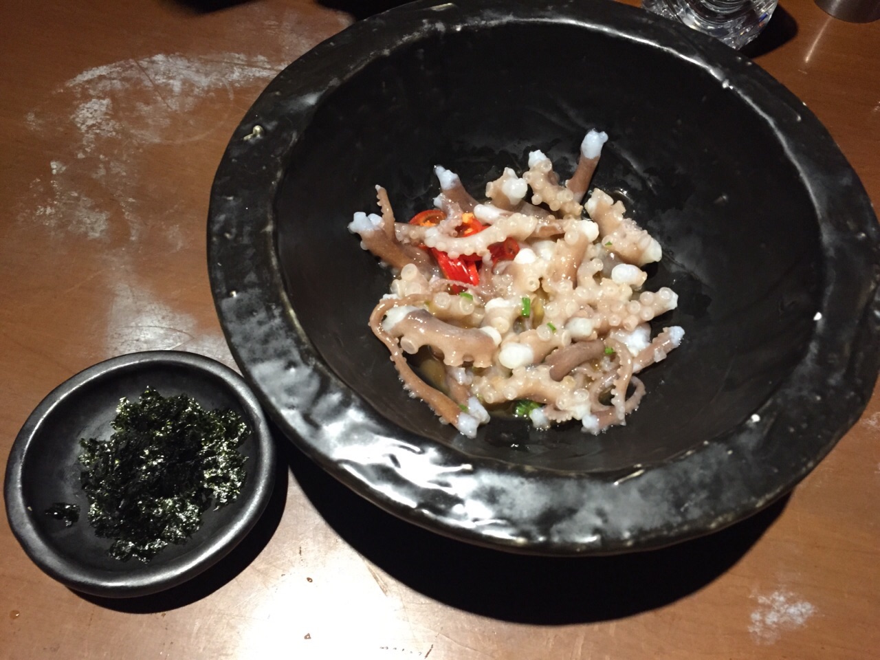 超赞 『芥末活章鱼』¥48 活的章鱼 待拍完小视频准备入口发现章鱼醉了 不动了 所以吃的时候不必担忧