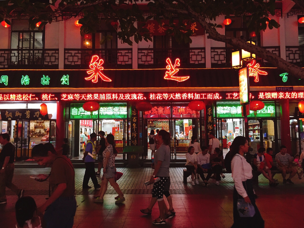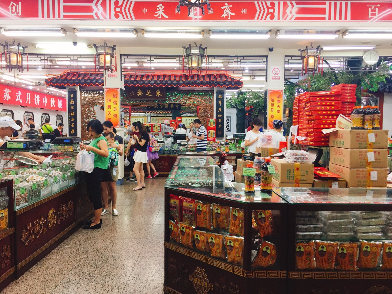☞2017.8 ∝╬══→ 姑苏城内觅美食☜ 苏州有名的糖果店 中国百年老字号 旗舰店开在观前街上 偌大的门面 门庭若市 基本都是买点特产带回去的 有个橱窗专门售卖现做的糖酥 可惜保质期较短 就去了独立专柜挑些真空包装的食品 小时候最爱吃的苏州津津豆腐干 来上一些;长辈喜欢的黑芝麻糖片捎上一些 价格不贵 保质期基本维持在60天左右