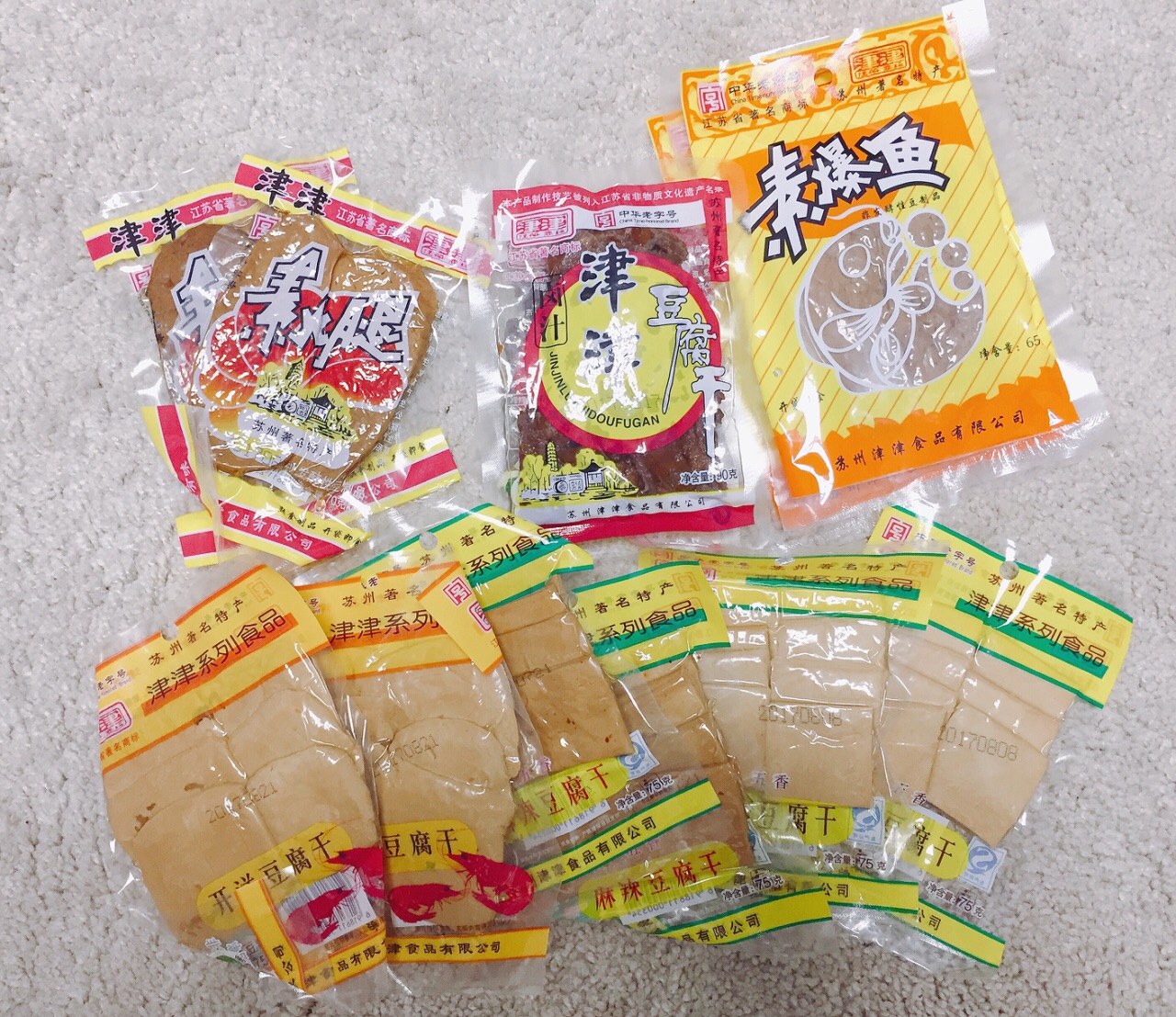 ...糖酥 可惜保质期较短 就去了独立专柜挑些真空包装的食品 小时候最爱吃的苏州津津豆腐干 来上一些