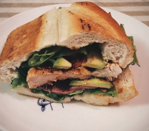 冰咖啡加上牛奶,层次非常漂亮。法棍切成一片一片的