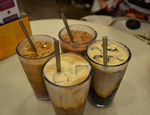 新加坡人挺喜欢吃甜的东西,法国也可以捎上甜甜的卡,也将,非常奶香味,而且很甜。法棍切成一片一片的。冰咖啡加上牛奶,层次非常漂亮。