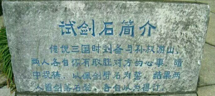 在北固山正门石牌坊的背面东侧,有一尊白色石头雕像,就是试剑石的标志物。石头是在雕像斜对面的水池中,不过这也只是个传说罢了。 这个景点实际上实在北固山景区的大门外的,所以即便不是买票入内,也是能看到的,只是景观本身并没有什么可看,重要的是背后的故事,总是很有趣的。