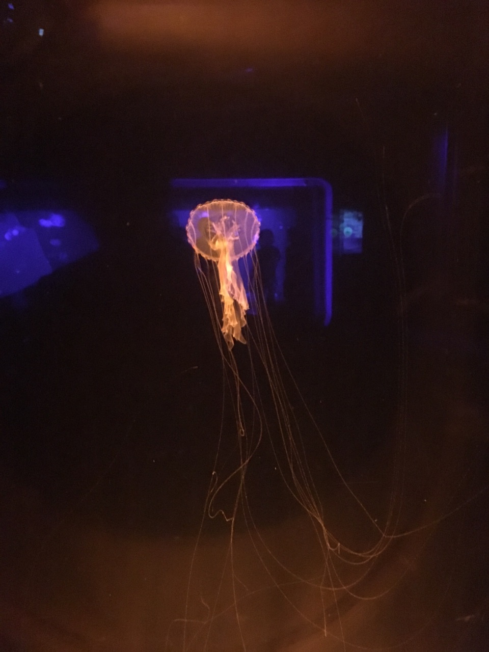 这个海洋馆分上下2层,包括了几十个用玻璃隔着的模拟海底世界,最高水面达6米