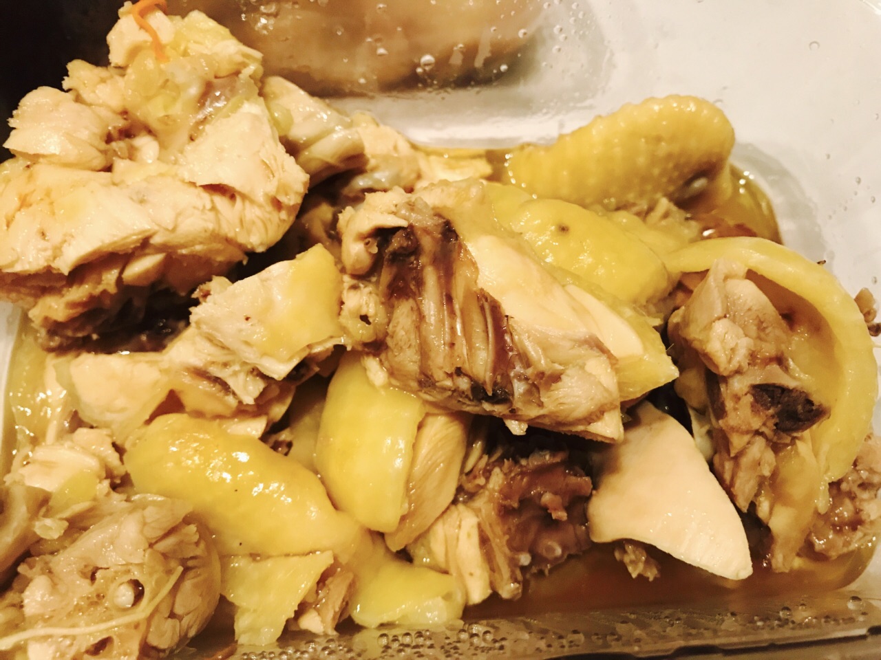 于是回来馋了好久的盐酒鸡了……于是下班来打包了介个……盐酒鸡、酸菜炒笋、芋饺~~盐酒鸡是半份滴...