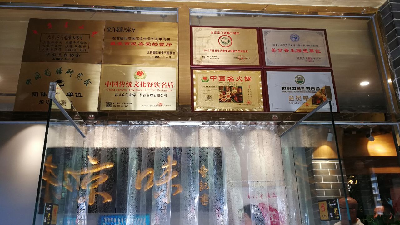 网友2017-09-20...门牌,账房柜台,非常亲切,一声吆喝,透着红火,尝一口爆肚百叶,吃出来北京的味道,回味无穷,推荐京门老爆三,正宗老字号,在附近拍摄红砖美术馆后,正好走到这儿,进门一股子京味京韵,熟悉的街道胡同门牌,账房柜台,非常亲切,一声吆喝,透着红火,尝一口爆肚百叶,吃出来北京的味道,回味无穷,推荐。