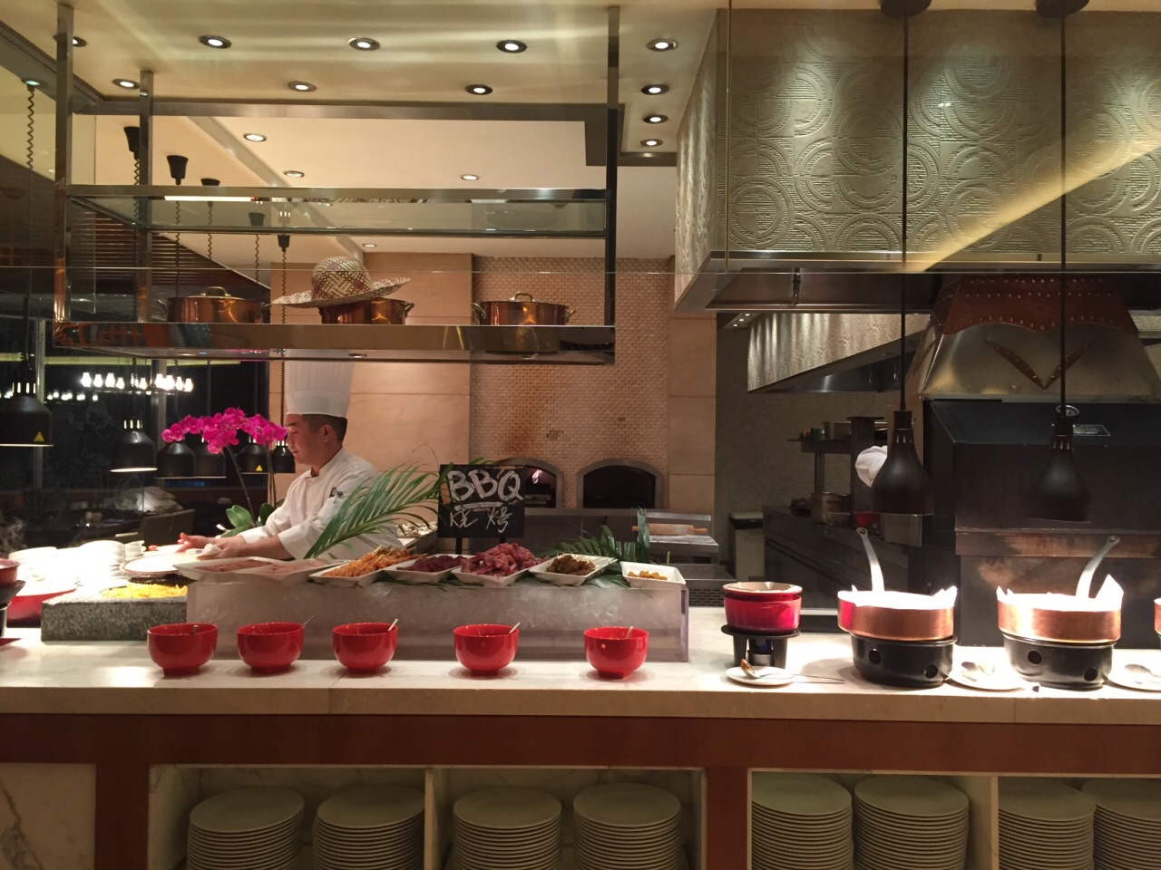 雅居乐万豪的都会尚膳自助餐厅 现推出88午市自助 188晚市自助 228元可外加大闸蟹畅吃 ps 服务费另收哦 都会尚膳的自助 垂涎已久是真的 绝佳的地理位置 一旁便是母校 勾画出不少童年回忆 酒店直达三楼 就看到了偌大的一块用餐区 这里还挺适合搞尾牙的 最近在搞马来西亚美食节 有我爱的叻沙 据说一两个月后会推出自助餐+火锅系列 区域大 取食就得走啊走 绕啊绕 分布不集中这点 我倒是喜欢 吃饱可以走上几步消化下
