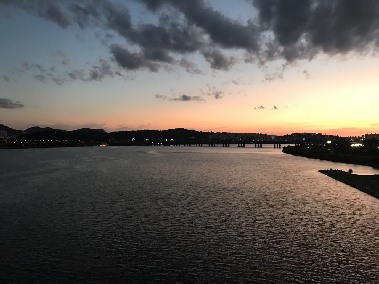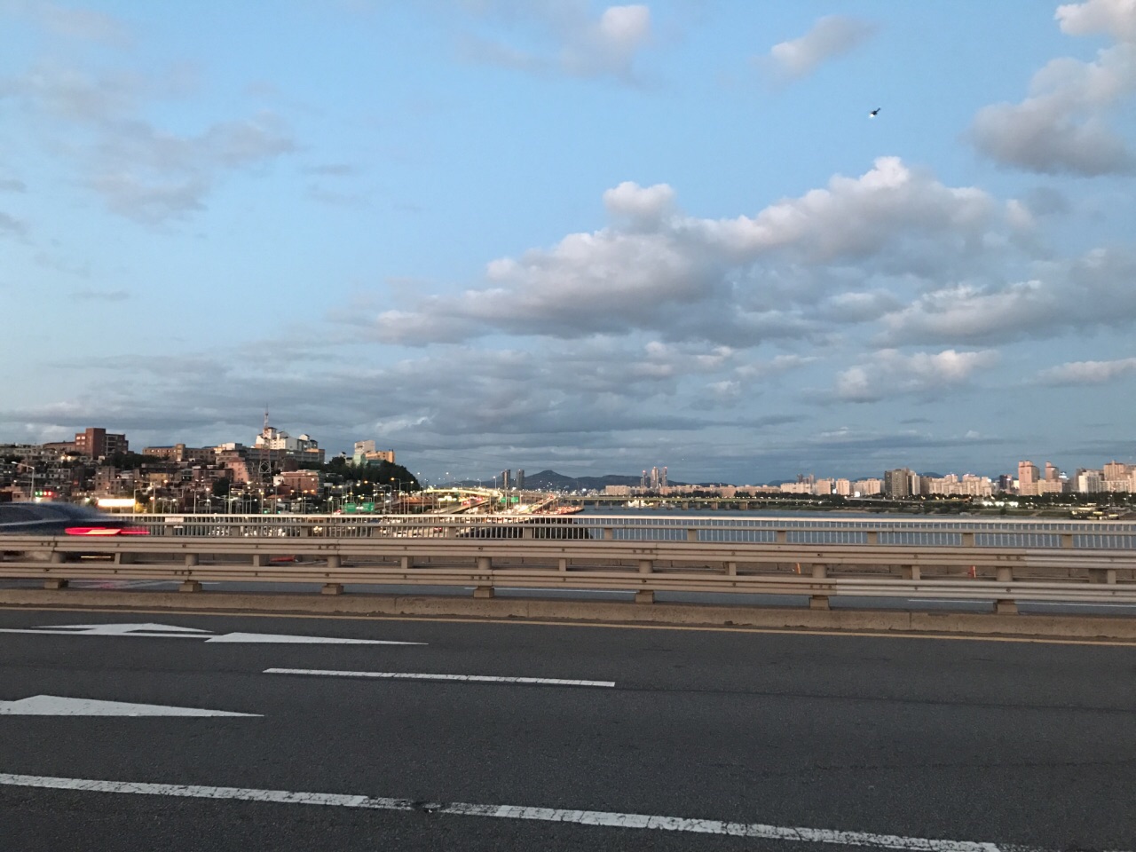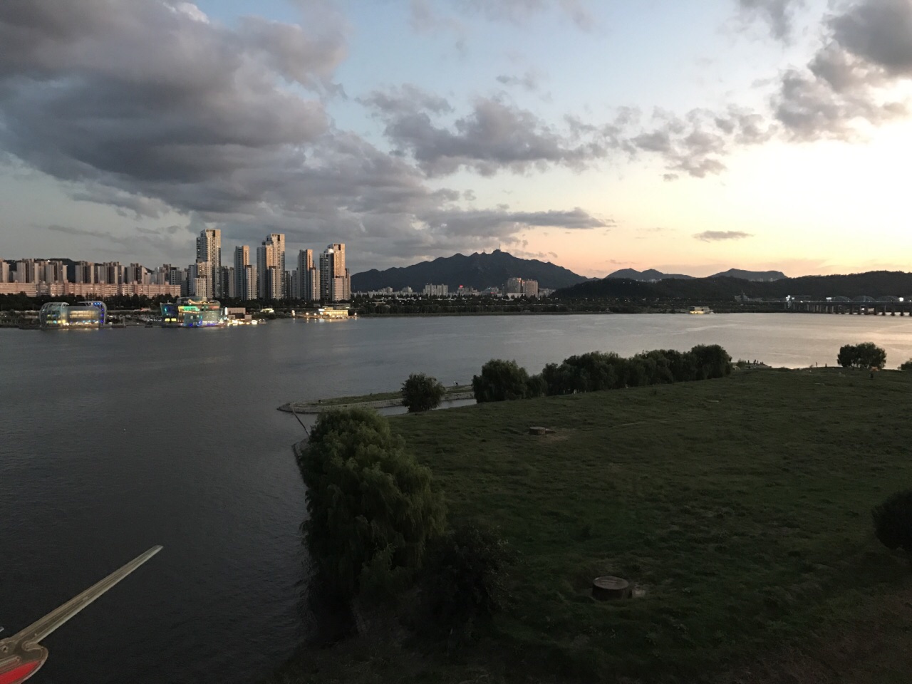 ...,没看到,不过上桥还是很不错的,有专门的人行道,看到汉江,很宽,去的时候正好是傍晚时分,很好玩本来是去看喷泉的,结果好像只有78月份才有,没看到,不过上桥还是很不错的,有专门的人行道,看到汉江,很宽,去的时候正好是傍晚时分,很好玩。
