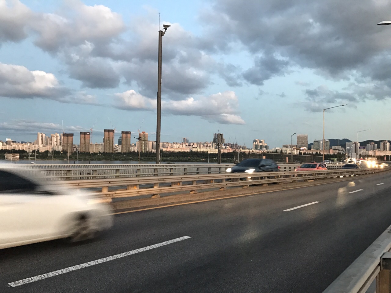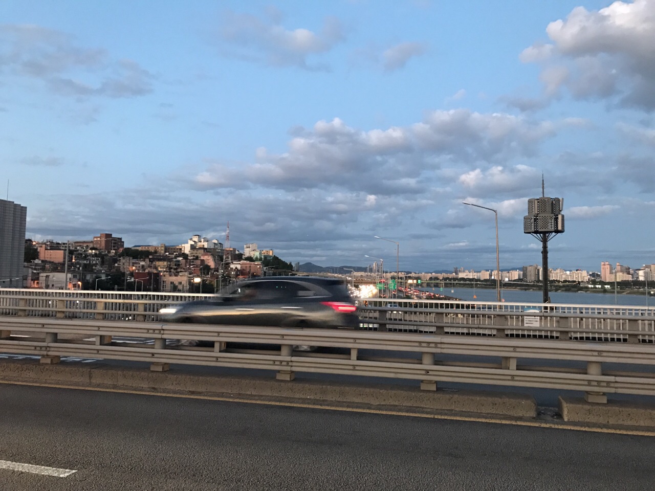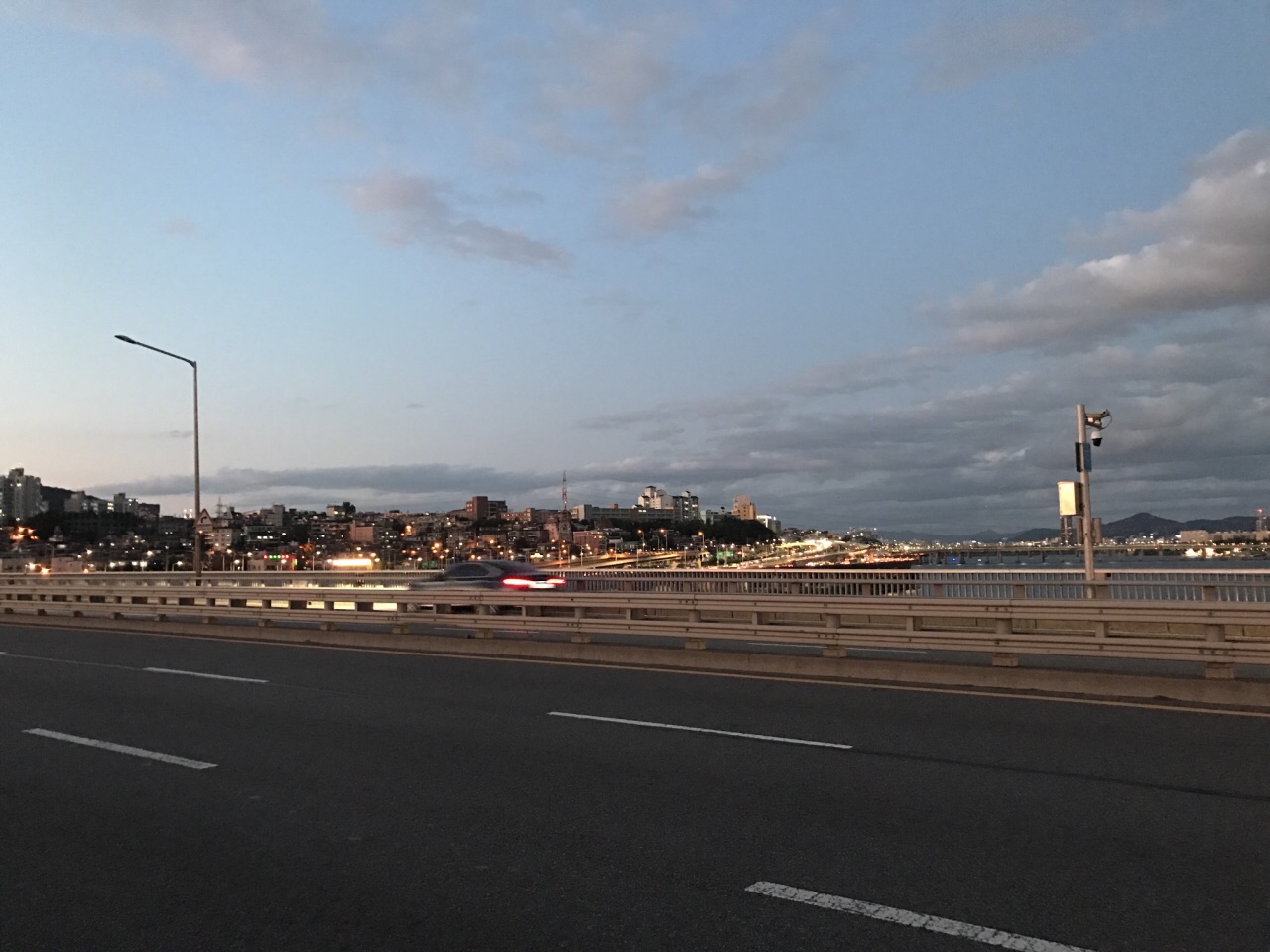 ...,没看到,不过上桥还是很不错的,有专门的人行道,看到汉江,很宽,去的时候正好是傍晚时分,很好玩本来是去看喷泉的,结果好像只有78月份才有,没看到,不过上桥还是很不错的,有专门的人行道,看到汉江,很宽,去的时候正好是傍晚时分,很好玩。