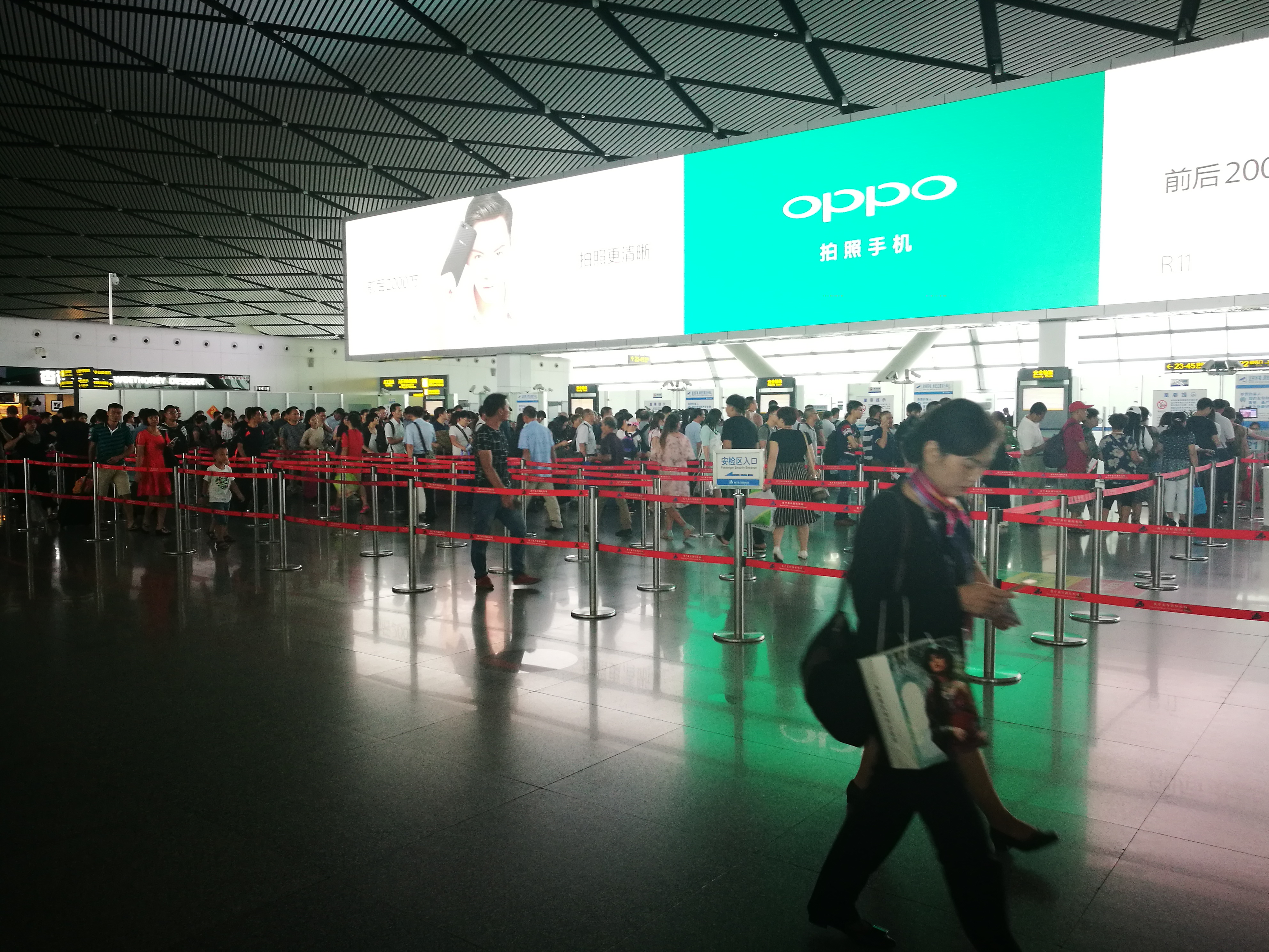 网友2017-09-21尤其是过安检的通道实在有些少,排队的人比较长,所以必须得提前足够的时间才可以T2航站楼的旅客很多,但候机厅的面积却不是太大,显得很拥挤。尤其是过安检的通道实在有些少,排队的人比较长,所以必须得提前足够的时间才可以。