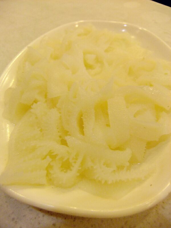 牛百叶:更喜欢的吃法是热炝牛百叶,但火锅店里不能要求太高!量不多,盘子里面干辣椒一堆,口感也一般