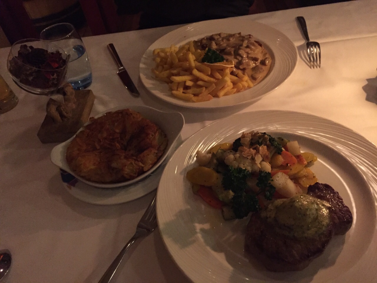 网友2017-09-24住在酒店吃在酒店,昨晚二人吃了晚餐,两份汤,一瓶啤酒一个前菜两个主菜,108.80瑞郎住在酒店吃在酒店,昨晚二人吃了晚餐,两份汤,一瓶啤酒一个前菜两个主菜,108.80瑞郎。不便宜但在琉森也不算贵,味道份量都尚可。