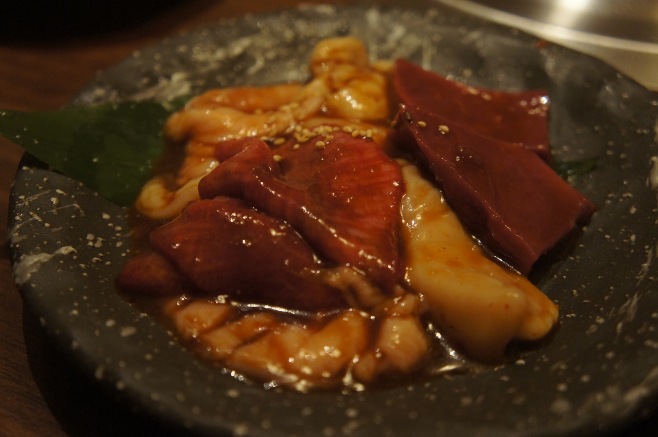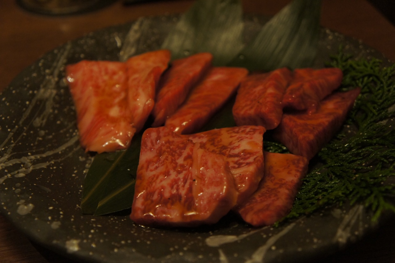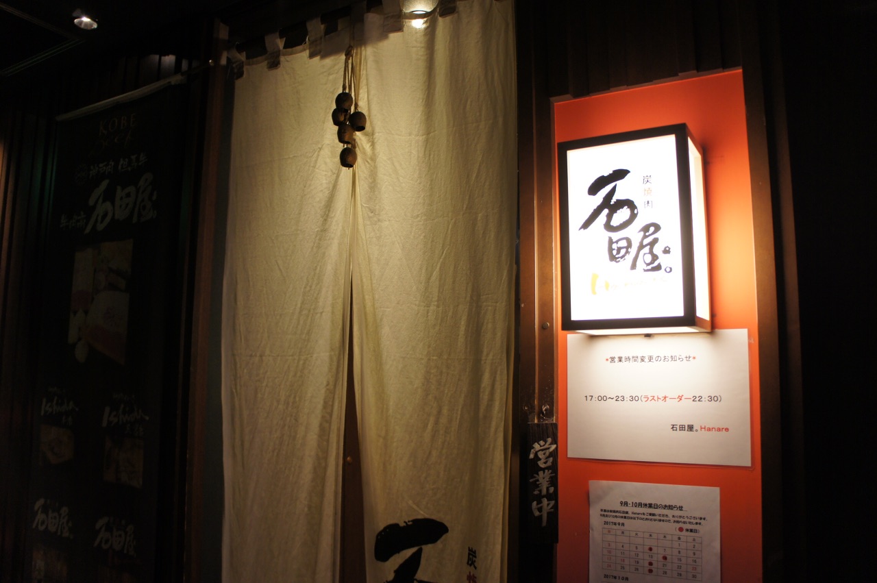 到神户的第一顿,还问了路,原来就在路口的大楼7楼,侧边有电梯直达,生意超好还要等位的,里面包厢环境不错,不过旁边吃得很嗨很吵好像在聚会,感觉是日本年轻人喜欢的聚会之地。 翻了下菜单,还有中文菜单,神户牛都有证明的,有特选,上等,普通的牛肉价格都不同。晚上有套餐可以选择,可以尝到不同部位的牛肉,烤肉份量都是一人份,选了石田屋特选的烤肉套餐,有牛肉拼盘,牛杂拼盘,蔬菜拼盘,主食和汤,量很足。 牛肉拼盘,都是上等特选的牛肉,有牛腰肉牛里脊赤身肉,自己炭火烧烤,变色了就能吃了,不要烤太久会老,肉质很赞很鲜嫩,好好吃!牛杂拼盘里有牛舌牛肝牛肚,牛舌很喜欢,超级有弹性也很厚实,牛肚吃不太惯!顺便烤一下蔬菜,洋葱青椒山芋正好中和一下味蕾。 另外点了一份主食,石锅拌饭,拌起来很香蔬菜也比较多,特别喜欢锅巴饭,配海带汤也不错。