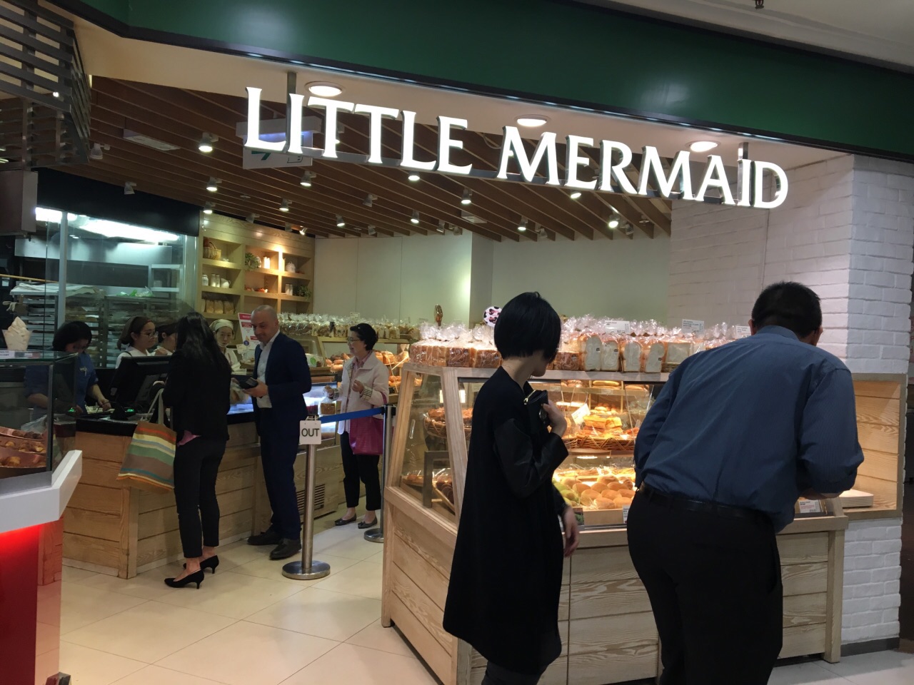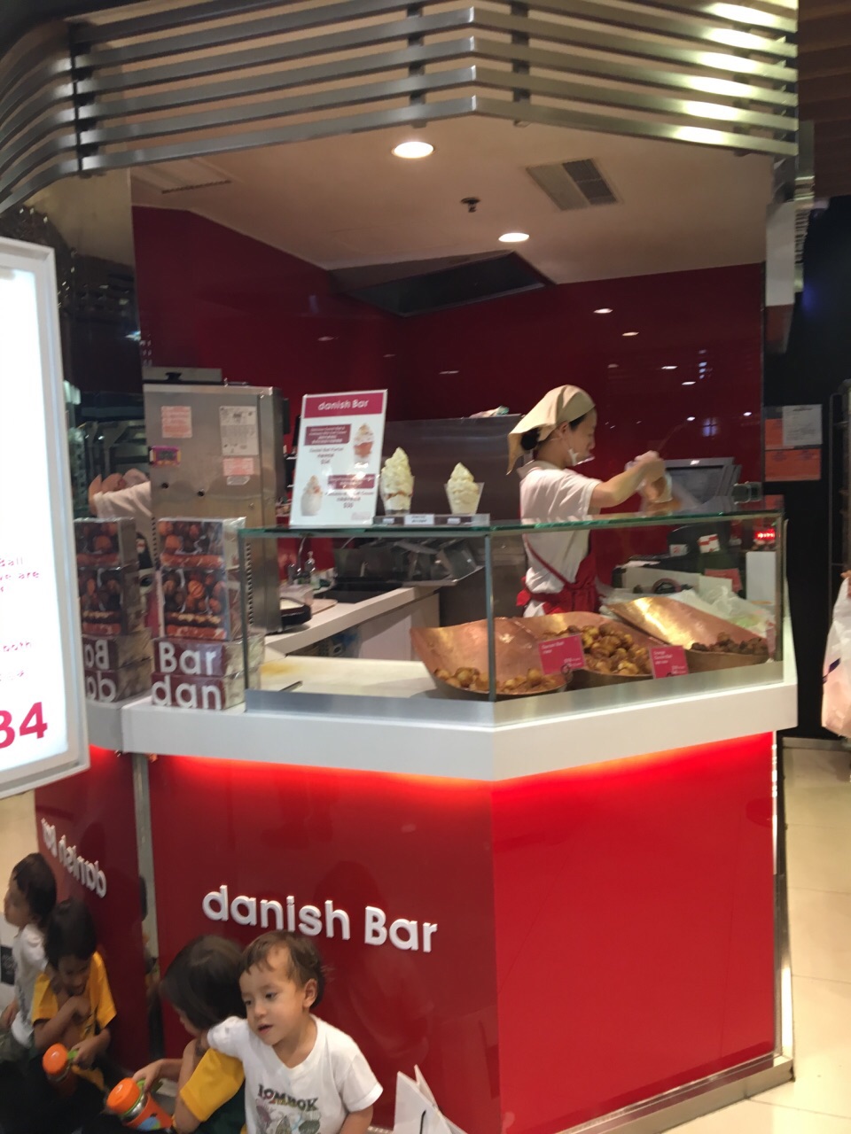 丹麦饼店并不是来自丹麦,Danish饼店总是和Little Mermaid小美人鱼面包店在一起,都来自于日本。丹麦条有点像小型的中国油条吧,外层微脆,而里面则是层次丰富,口感软软绵绵,空气感十足。外层裹了不同的味道,枫糖、朱古力、脆糖、还有火腿芝士