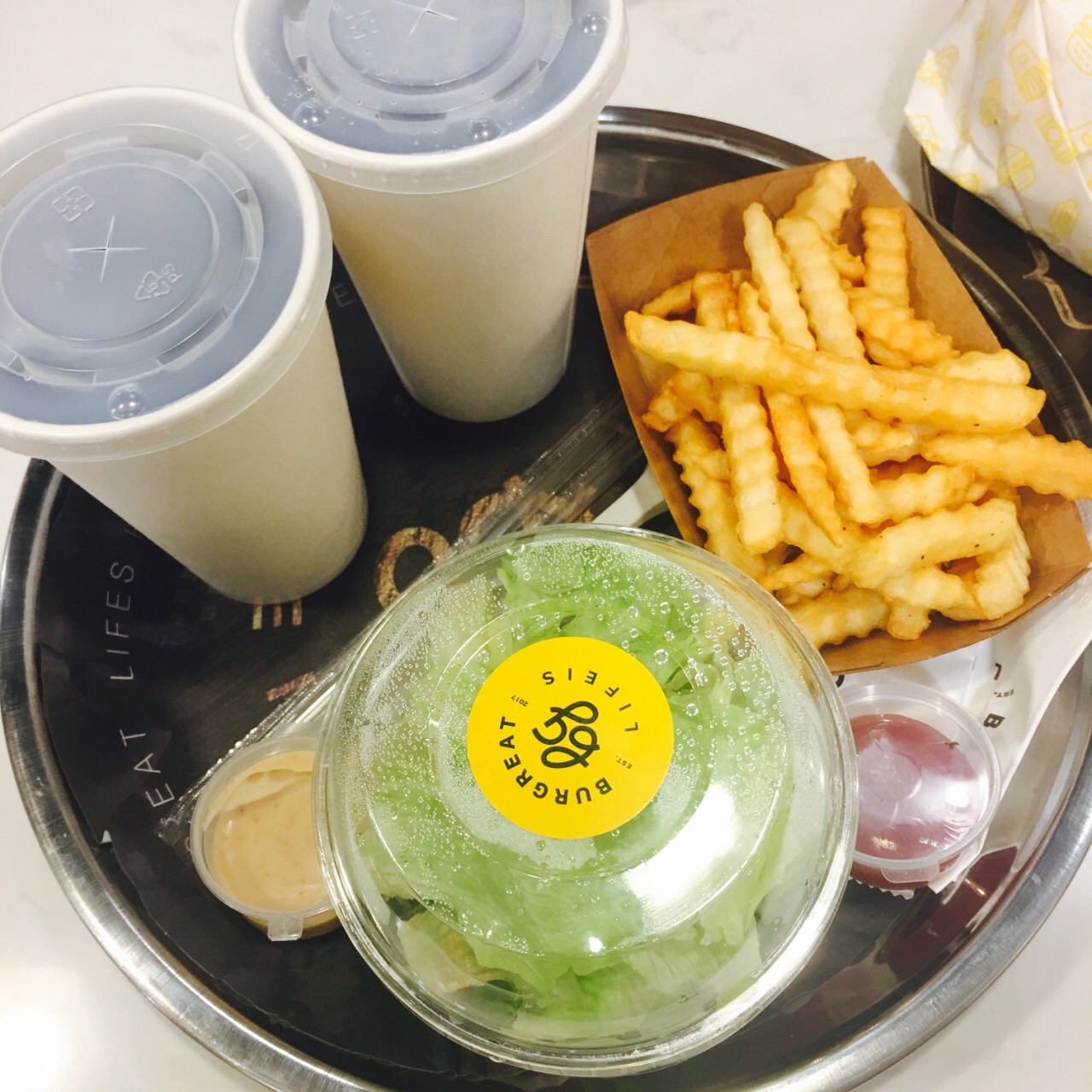 SOHO复兴广场新开了家店,取名堡革难不成是一场汉堡的革命了❤️ 收银MM声音可爱,点完餐入座,制作完取号牌会亮,然后自己去制作区自取,全开放式的制作区域,看着汉堡制作的全过程,现点现做,让人对食材制作很放心 堡革BURGREAT家主营:汉堡&小吃(色拉&薯条)&饮品 #天鹅堡#69元,在简餐中这个价位属于中上,天鹅堡就是饿鹅肝堡,被超大个头汉堡惊艳到了,第一次吃到简餐中的大汉堡。天鹅堡除了大块牛肉饼,上面附有饿鹅肝,配料也很多,汉堡超大个头,饿肝与牛肉饼的完美结合,鹅肝特嫩,一口下去多汁~✨ #麻小堡#56元,将当下最受欢迎️小龙虾融入到汉堡中,话说也是第一次吃小龙虾汉堡,一口吃不觉得辣,小龙虾汤汁很多,吃到后面还是挺辣的 #薯条#堡革家使用的是大曲格,炸的金黄通脆,爽~✨