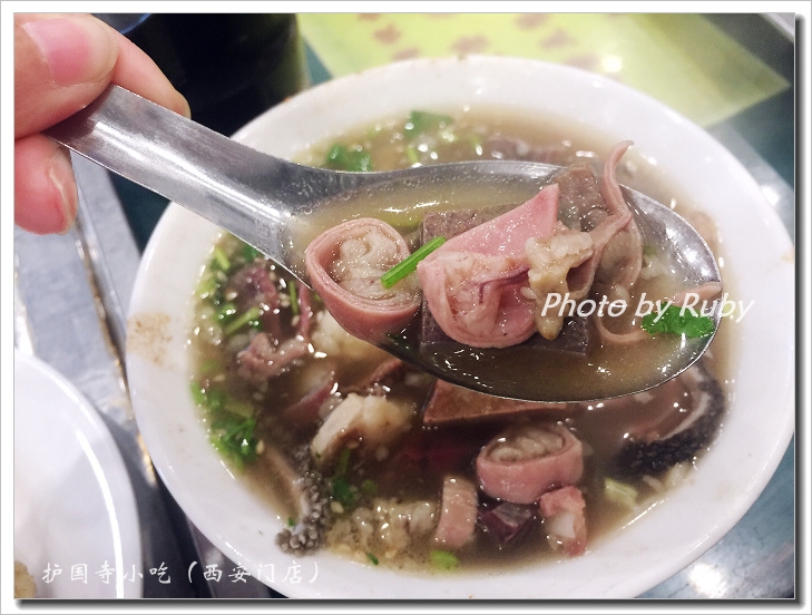 护国寺小吃是以经营清真京味小吃的小吃店,品种相当的丰富,可以想到的老北京小吃,他家都有。但是呢,这么有名的店,我居然没去吃过,倒是常常路过,外卖窗口总是满满的各种甜的小吃,驴打滚、豌豆黄、火烧、排叉、焦圈啥的。觉得没啥肉的,又清真店,不怎么是我的菜,就没怎么惦记着去。这次去,大概上午9点半。店里人还是不少,排队还小排了会儿,店里闹哄哄的,取了餐只能拼桌,吃的很不安稳,都着急忙火的,很赶,就餐感受很不好。吃的方面,点了2碗杂碎汤、1个小的烧饼夹肉、1个牛肉饼,杂碎汤料相当的足,就碗小点,汤有点儿少,味道也不错。小烧饼夹肉很小的一个烧饼,牛肉饼有些让我惊着了,馅可真大,薄皮大馅的,是我喜欢的风格,吃着味道够足,味道鲜香,吃着很香。服务方面,自己点餐取餐,然后找位置,也没啥服务。总的来讲,吃了有惊喜,他家还是有很多荤小吃的,还有爆肚啥的,以后把荤的都尝尝,喜欢上他家牛肉饼了,下次还要吃。