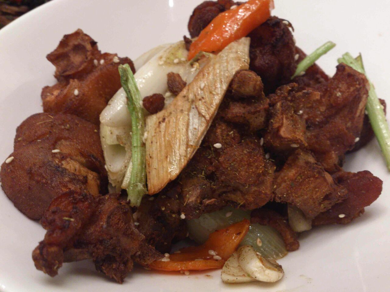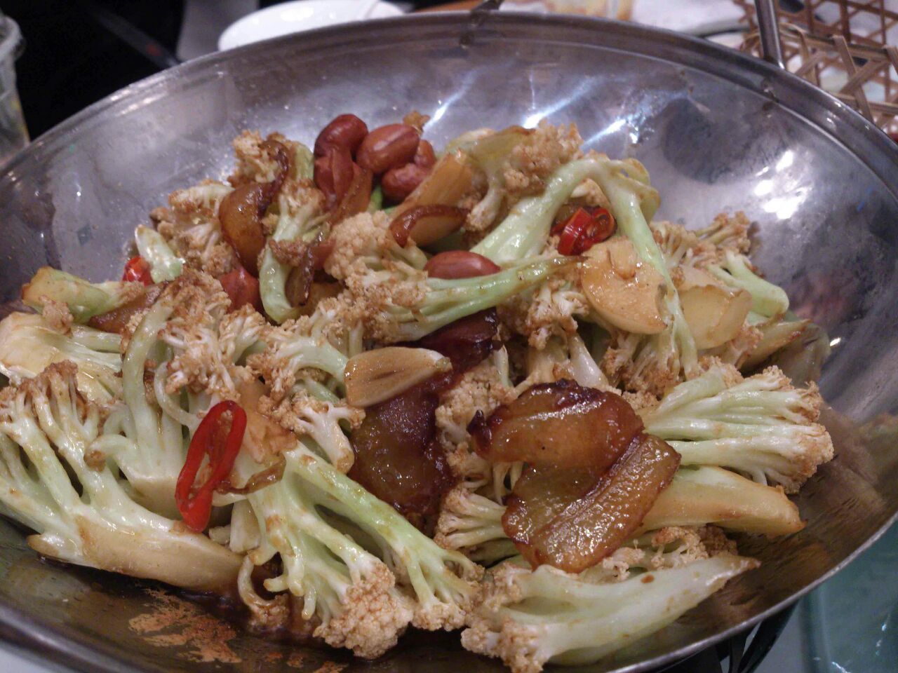 干锅鱿鱼 这个鱿鱼要牙口好一点才能咬 整个偏咸 蚝油生菜 有略微勾过芡 酱汁可以更好的包裹着生菜 味道不错 干锅花菜 辣味的蔬菜一直不是77的爱 而且这花菜还烧得不酥 更讨厌了! 田螺塞肉 他们家菜普遍的问题 偏咸.... 口感上还是不错滴