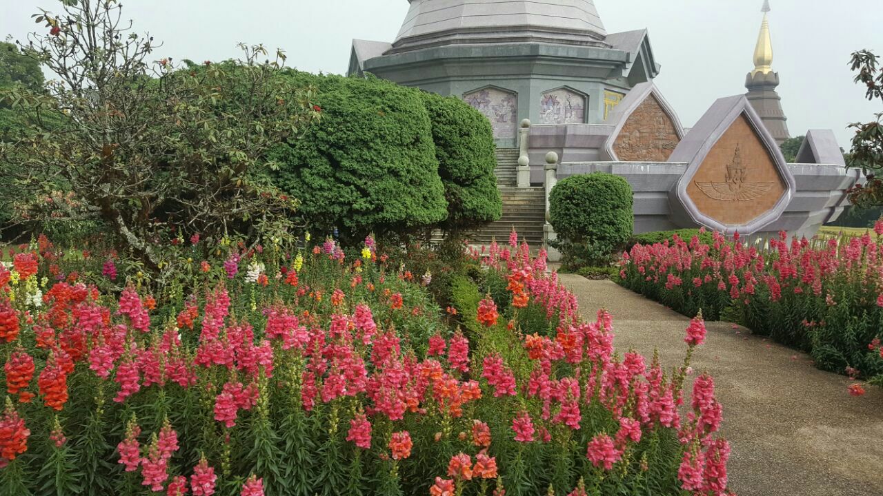 因他农山是泰国的最高峰。听上去好像很高的样子,其实开车可以直接开上去因他农山是泰国的最高峰。听上去好像很高的样子,其实开车可以直接开上去。山顶上有两座巨大的佛塔那是已故国王和王后。为他们身后所修建的供奉骨灰的地方。