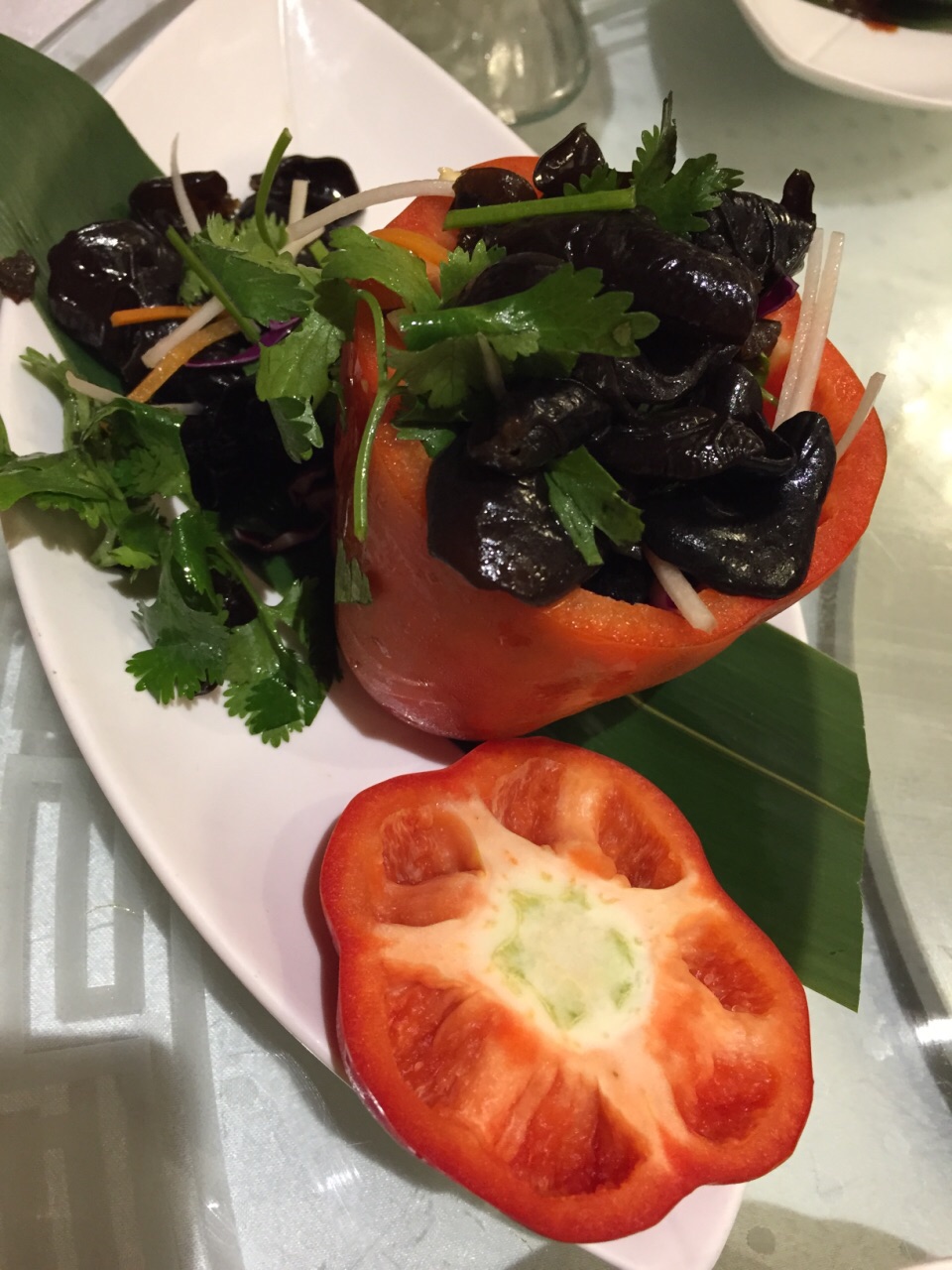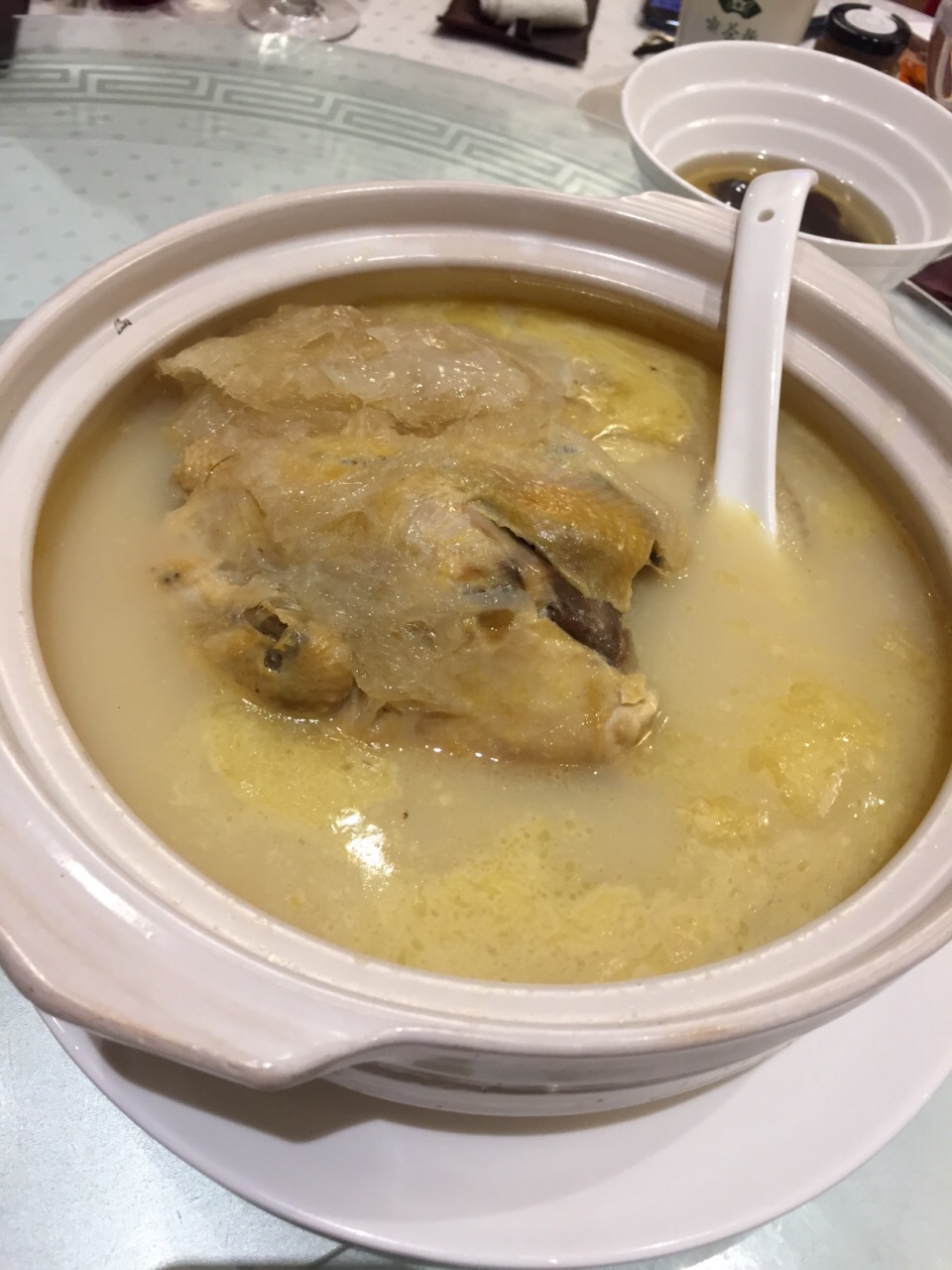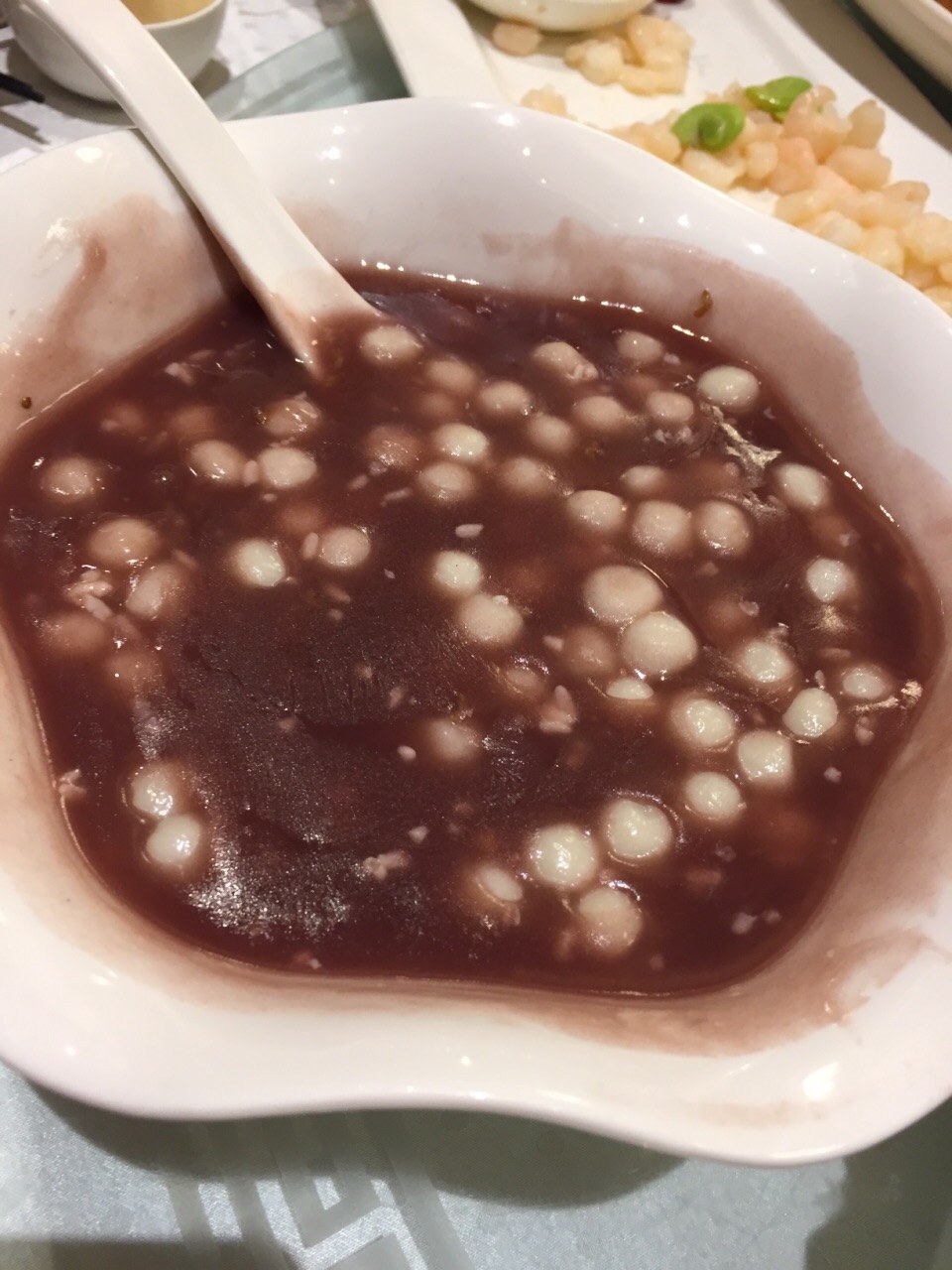 上海口碑本帮菜馆 接地气 可以办大型婚宴 尾牙 菜色中规中矩 『海陆元气锅』整一锅海鲜 青口贝、大虾、鳝背、鱿鱼、蟹、鲍鱼...浓鲜的汤底 称得上这元气的名头 底下的绿豆芽清一色去头去尾 清清爽爽值得大赞 唯独鸭血失色 那口感真是不行 『烤全红鲷鱼配柠檬,百里香和黄油芝麻菜色拉』鱼肉很嫩哦 咸鲜的口感 边上配了色拉 建议少量蘸取还是不错的 丰富味蕾 『法式香菜炖蛋』一坨类似奶油的玩物很奇怪 炖蛋还是可以吃吃的 『掌上明珠』这造型像极了淘宝上热卖的“日本布丁”剖开 内部是杏仁味的馅儿 胶质的口感 般般吧