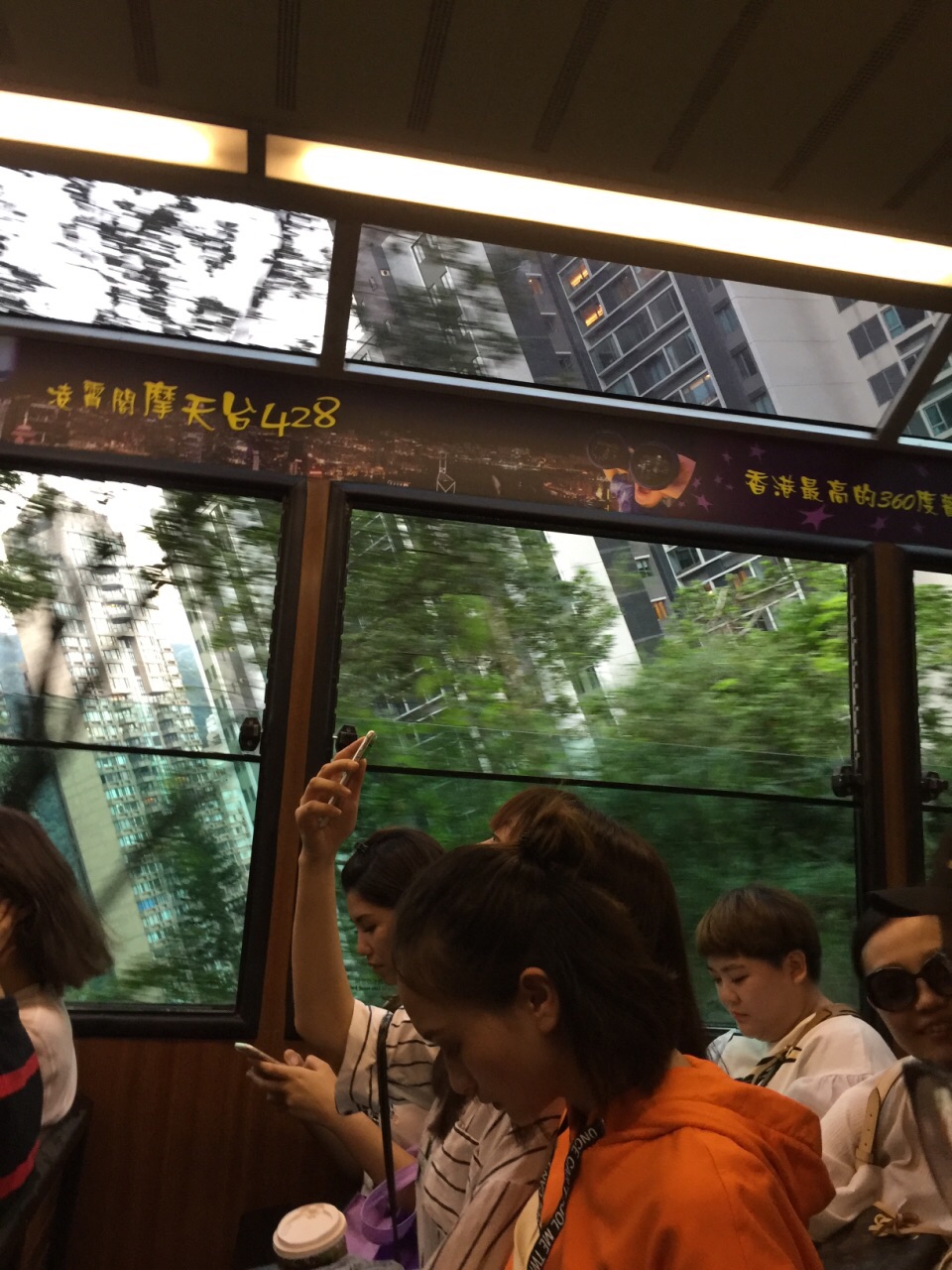 在地鐵中環站下車,從J出口出去,沿山頂纜車指示標走,大概20分鐘就到了,排隊的人很多,建議晚點兒再上,一定要坐在右手邊,風景好,山頂人很多,擠來擠去,拍不到什麼的,有照紀念照的,150一個人,餐廳商店有很多,性價比還可以。