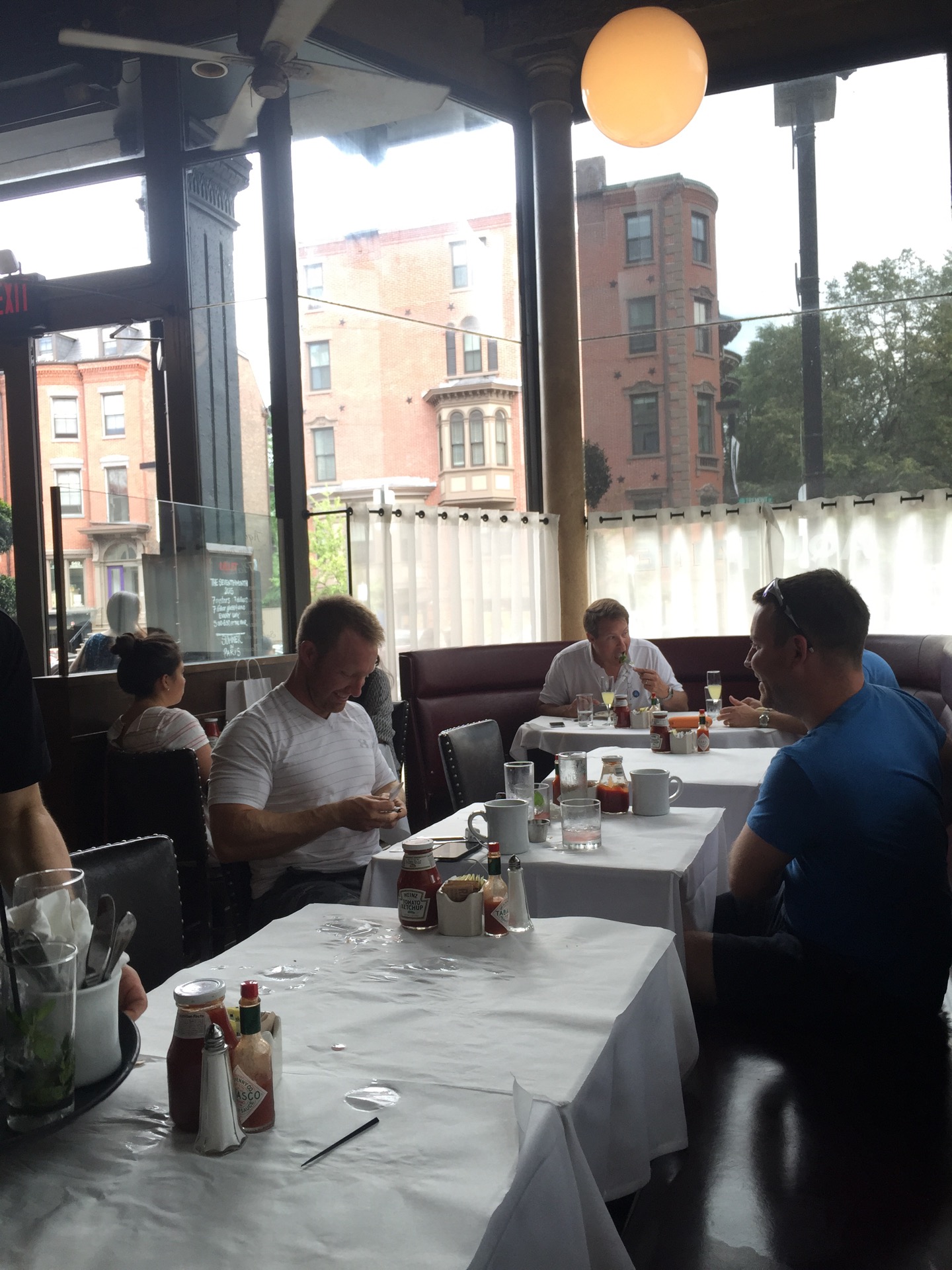 Really cute Parisian cafe atmosphere. Best eggs Benedict I've ever had! Great truffle frites and French onion soup too.