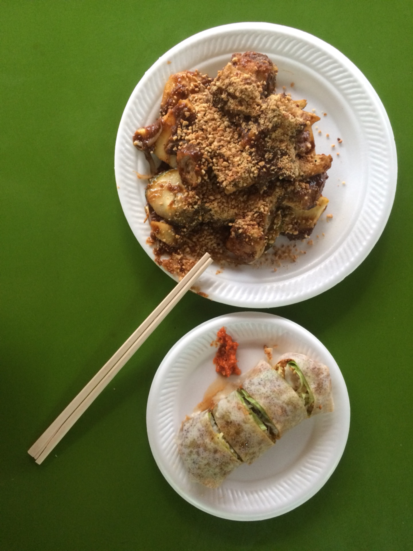 The rojak is made with a thick, nutty sauce. Th...The rojak is made with a thick, nutty sauce. The popiah must be had with the chilli.