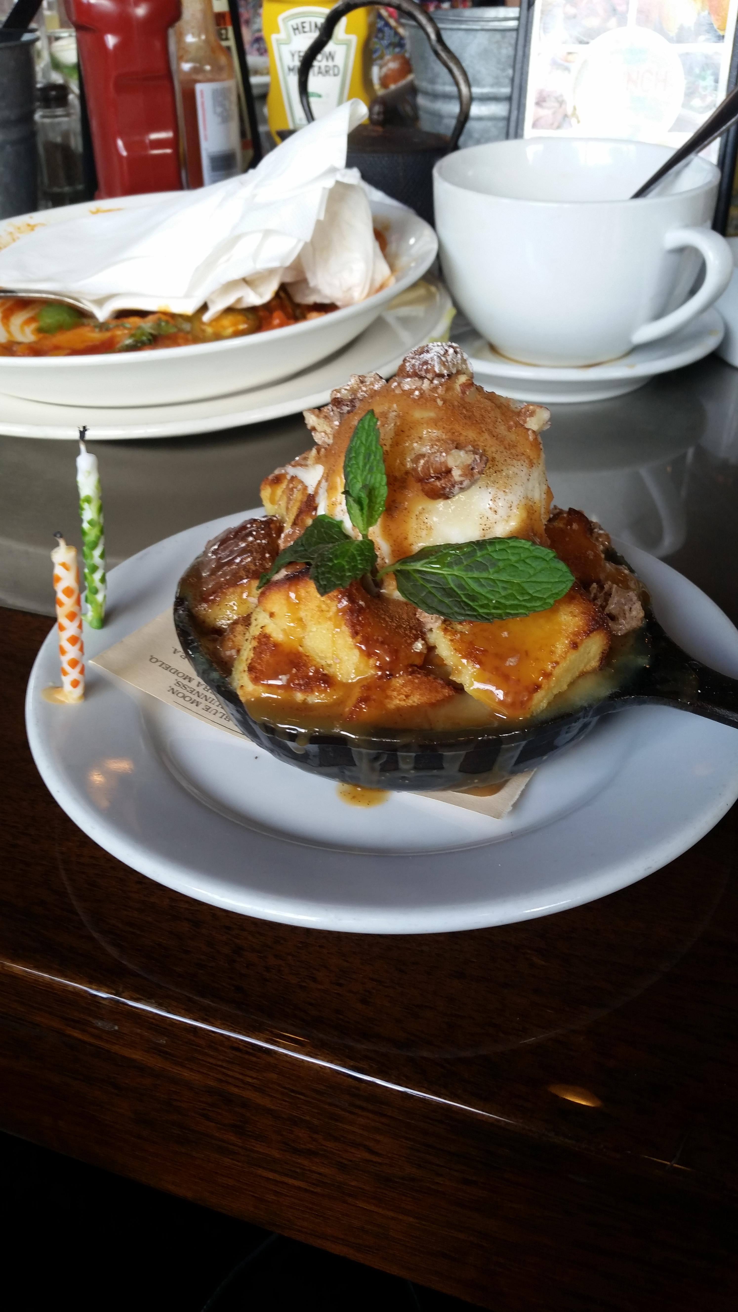 Bananas foster bread puddin with coconut ice cream. This was delicious but the coconut ice cream should be replaced, it doesn't compliment the bread pudding at all