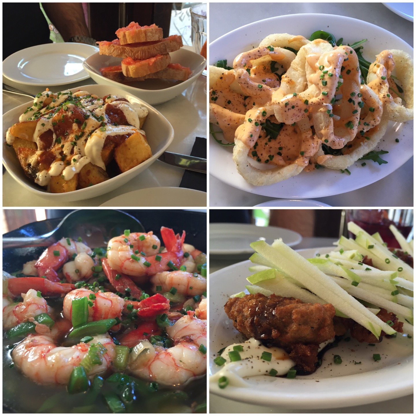 Patatas bravas, Red shrimp 'al ajillo' with green beans and scallion, Fried calamari with kimchi mayonnaise, smoke aubergine fritters with goat cheese mutlaka yenmeli! Her biri birbirinde lezzetli