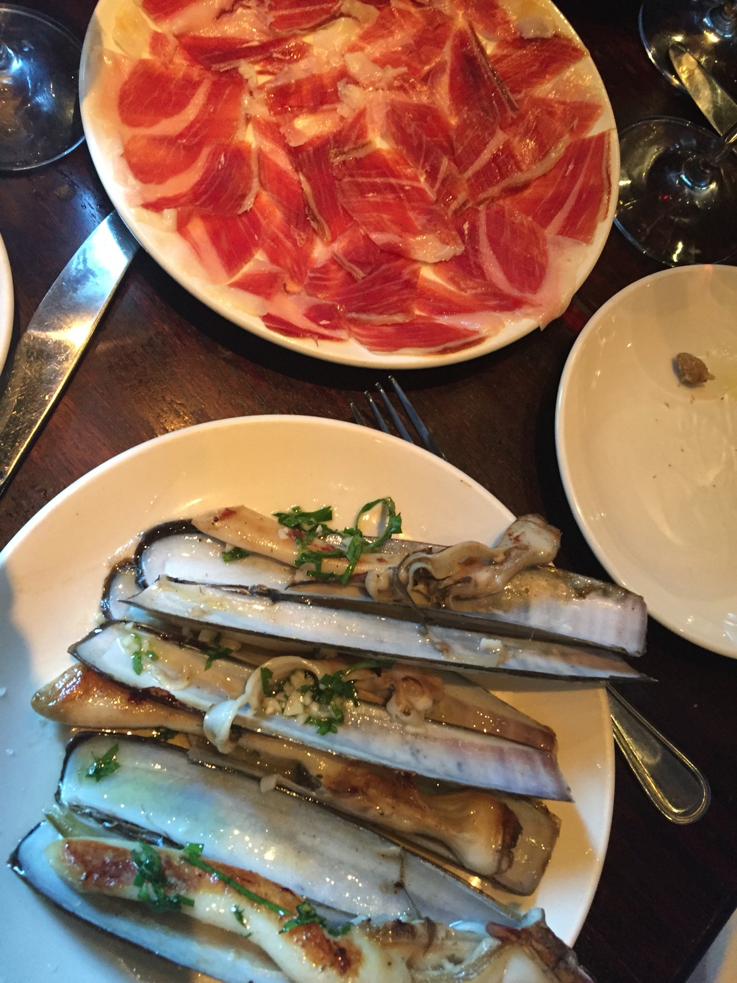 Larger than tapas; duck egg w/black truffles - must get! Also tried Long Island striped bass w/peaches, razor clams, bone marrow, jamon iberico & mussels w/chorizo. Complex flavors and unique pairings
