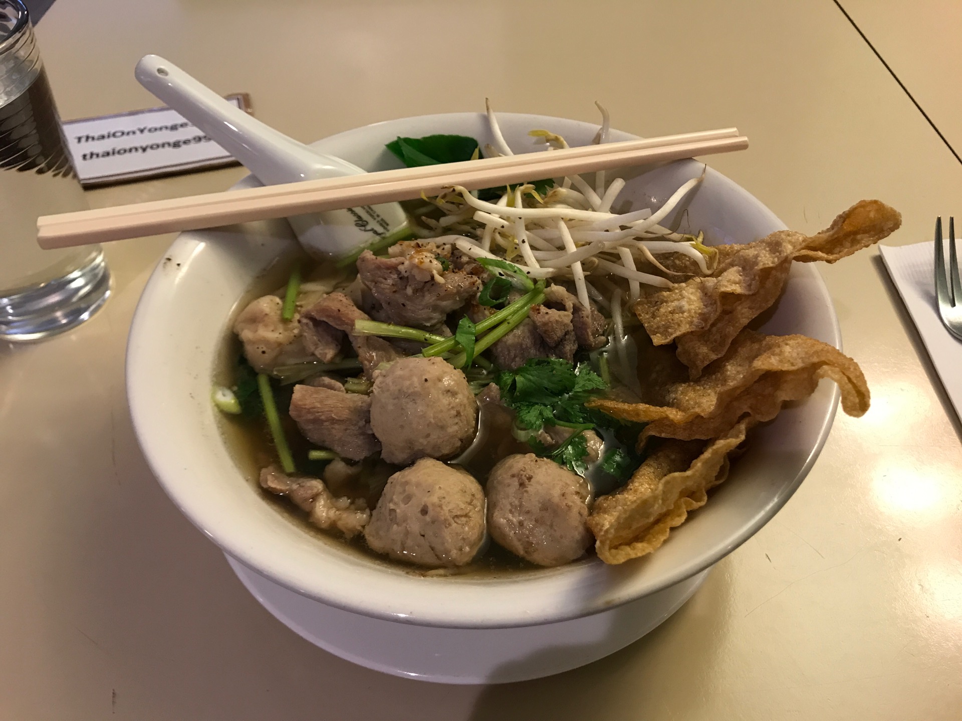 Hole in the wall Thai restaurant. Was super surprised by the large portion I got. The noodles were super delicious and the meat was soft and tender too! The broth was clear and tasty. polite staff