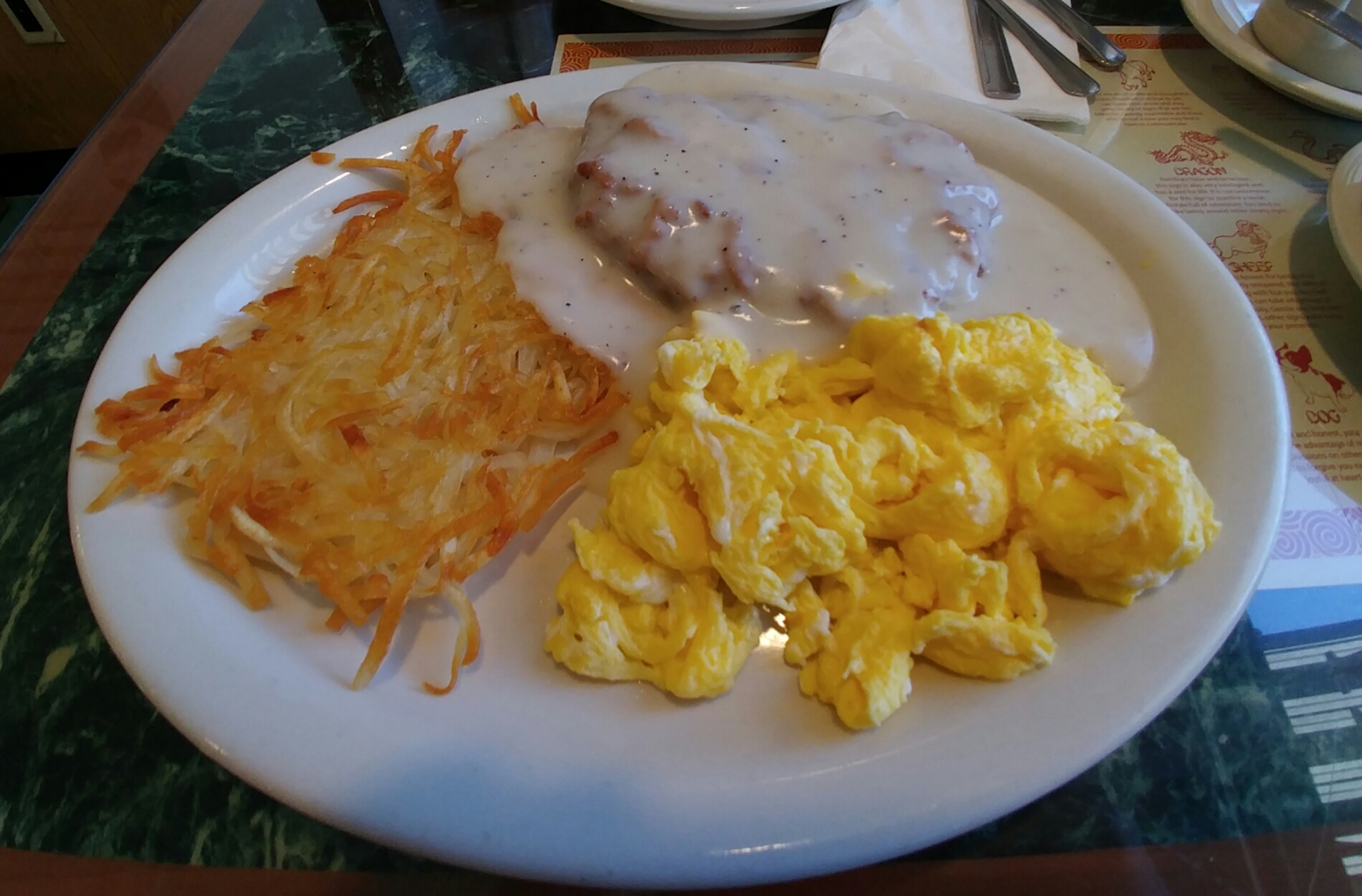 Fried chicken steak with sausage gravy is surpr...Fried chicken steak with sausage gravy is surprisingly good.