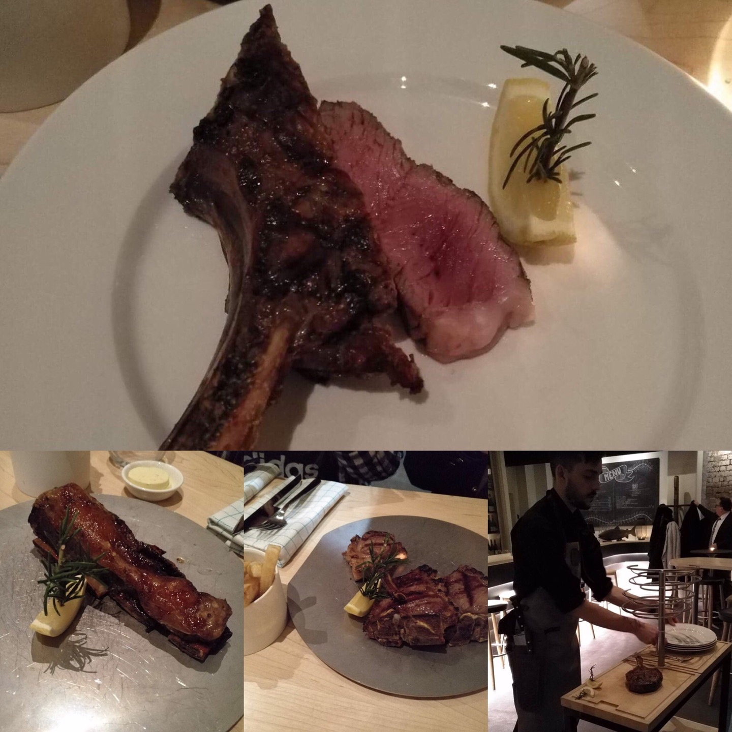 网友2017-08-09Beautiful dry-aged beef medium rare// beef shor...Beautiful dry-aged beef medium rare// beef short ribs// mutton and a side of thick-cut chips