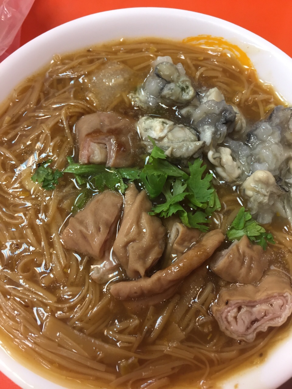 因为怕一个人吃不完 分量很大 所以要了一碗小的蚵仔面线 味道还可以哦 店铺很干净 而且有空调 人不多没吃臭豆腐 因为怕一个人吃不完 分量很大 所以要了一碗小的蚵仔面线 味道还可以哦 店铺很干净 而且有空调 人不多 可能是晚上的缘故人不多